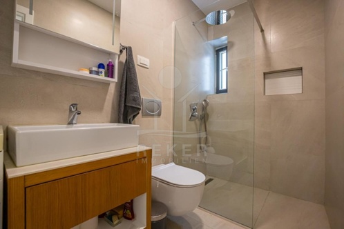 Das Highlight des Gebäudes ist das Penthouse auf der obersten Etage, das exklusiv von den Eigentümern genutzt wird. Hier genießen sie Privatsphäre und Luxus mit atemberaubendem Ausblick über das Meer.
