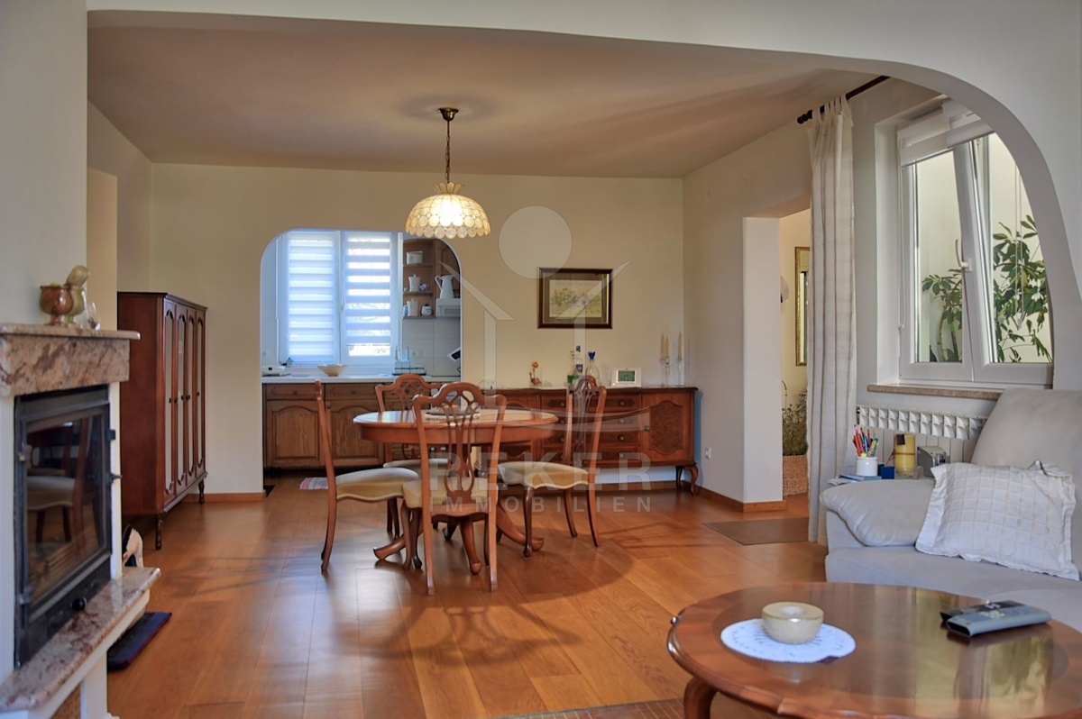 Das Haus besteht aus vier separaten Wohnungen, die jeweils über einen eigenen Eingang verfügen. Diese exquisite Immobilie bietet eine hervorragende Ausstattung und wird möbliert verkauft. Im Erdgeschoss befindet sich eine geräumige Wohnung, die derzeit vom Eigentümer bewohnt wird. Sie umfasst ein Wohnzimmer mit einem gemütlichen Kamin, einen Ess- und Küchenbereich, zwei Schlafzimmer und eine großzügige überdachte Terrasse. Darüber hinaus befindet sich auf dieser Etage ein weiteres Apartment mit einem Wohnbereich, einem Schlafzimmer und einem Badezimmer.