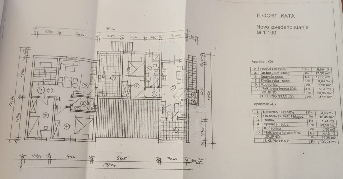 Im ersten Stock gibt es zwei weitere Einheiten. Die kleinere Wohnung verfügt über ein Wohnzimmer, ein Esszimmer und eine Küche, ein Schlafzimmer, ein Bad und einen Balkon. Das größere Apartment bietet ein Wohnzimmer, ein Esszimmer, eine Küche, zwei Schlafzimmer, ein Bad und einen Balkon. Die luxuriösen Wohnungen bieten jede Menge Platz für Komfort und Entspannung.