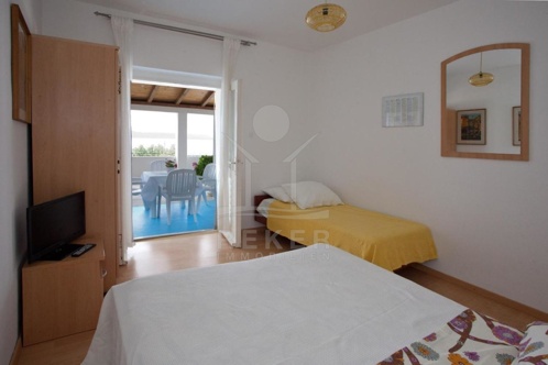 Im 1. Stockwerk finden Sie 3 Apartments, darunter ein Studio-Apartment und 2 kleinere 1-Zimmer-Apartments, die zusammen 6 Schlafplätze bieten. Ein praktischer Stauraum und eine überdachte Terrasse runden das Angebot ab und schaffen eine einladende Atmosphäre für Gäste.
