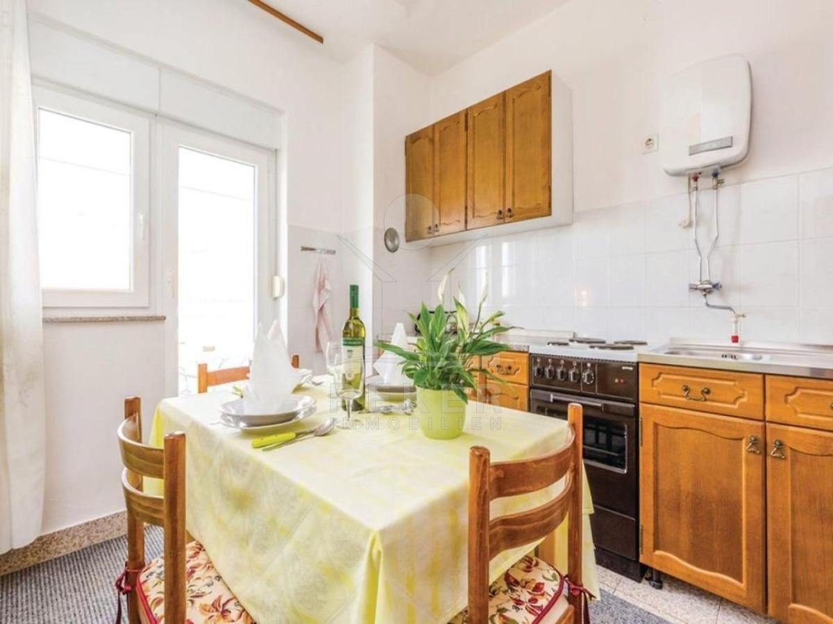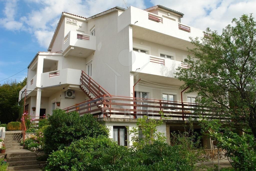 Das geräumige Haus ist mit einer Klimaanlage ausgestattet und bietet verschiedene Heizungsoptionen wie eine Zentralheizung mit Heizöl, eine Holz- oder Stromheizung. Die Immobilie wird möbliert verkauft. Im Untergeschoss befindet sich eine 1-Zimmerwohnung und im Erdgeschoss 2 weitere Wohnungen. Im Obergeschoss und Dachgeschoss befinden sich ebenfalls 2 weitere Wohnungen. Jede Etage ist durch eine separate Außentreppe erreichbar. Genießen Sie einen atemberaubenden Panoramablick auf das Meer und die Insel Krk. Dieses beeindruckende Feature wird Ihnen bei jedem Besuch ein Lächeln ins Gesicht zaubern.