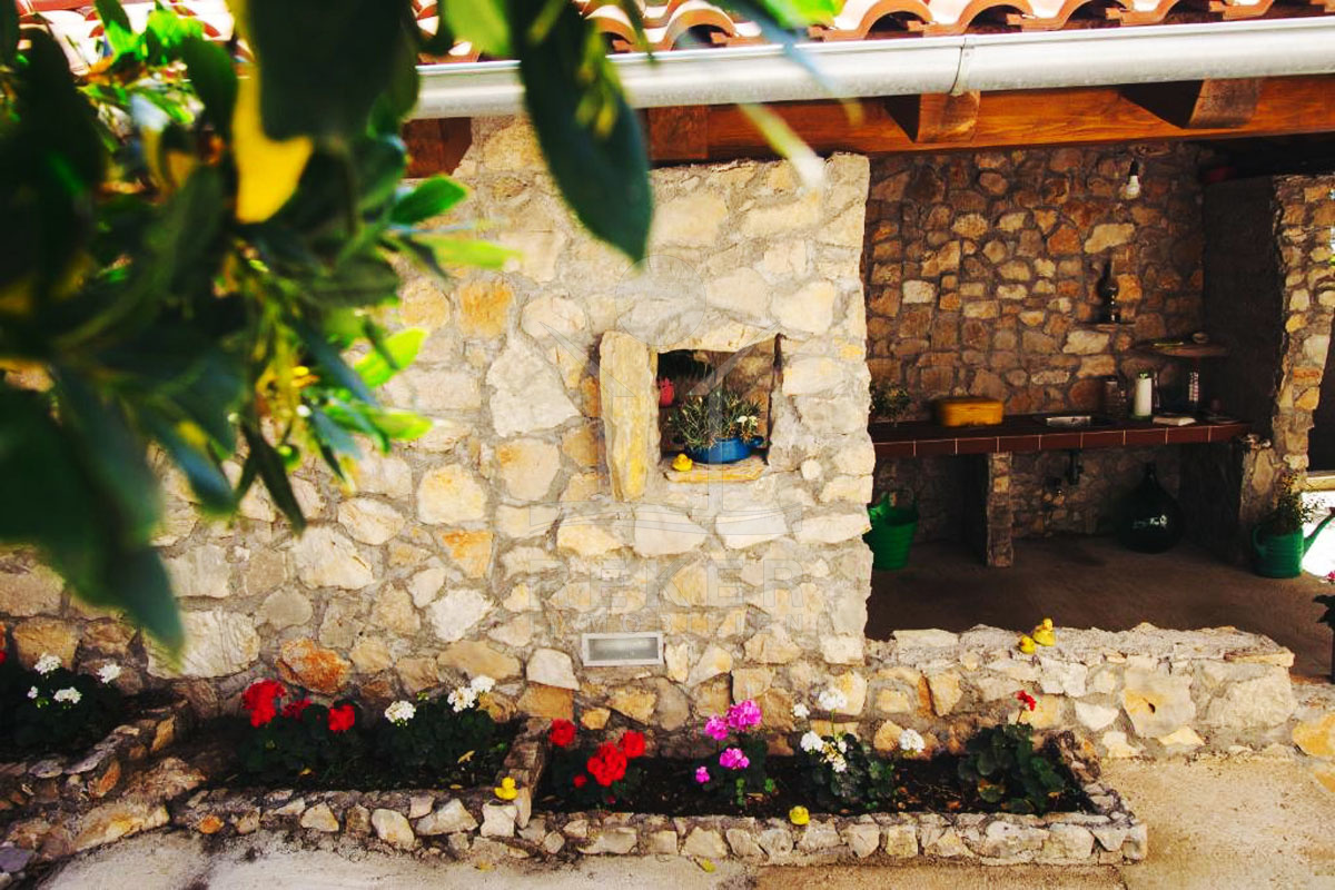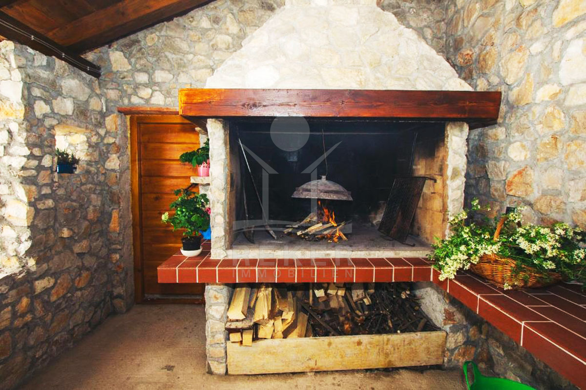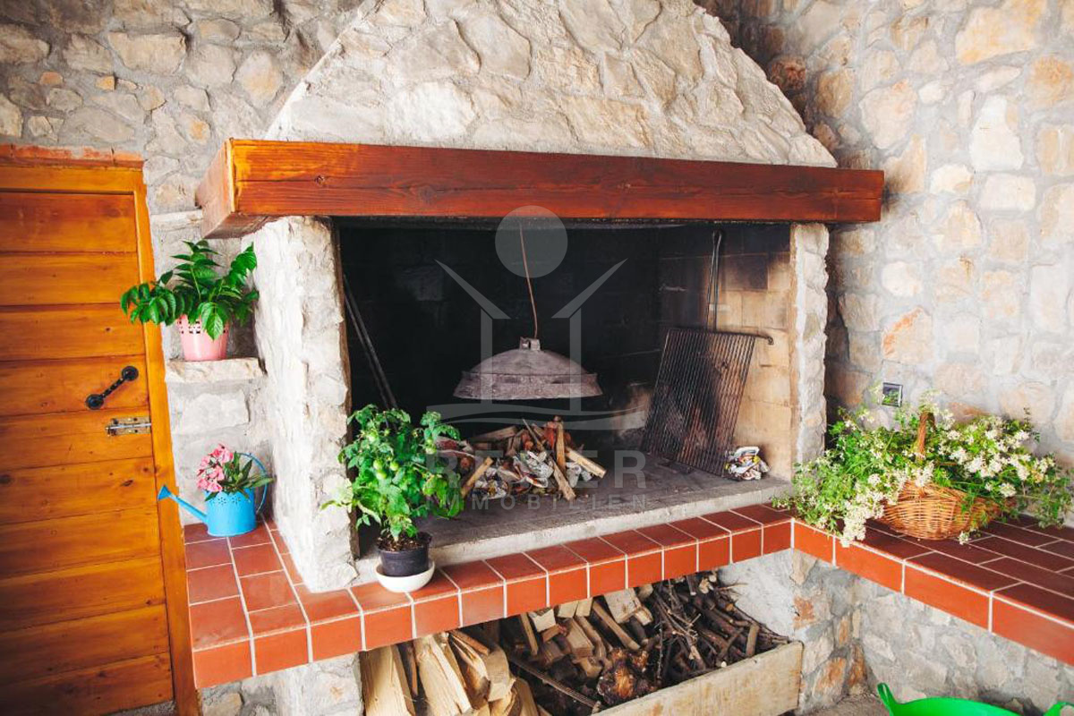 Hinter dem Haus stehen ein Grillplatz mit Überdachung und ein Abstellraum zur Verfügung. Diese Außenbereiche bieten die perfekte Umgebung, um die mediterrane Atmosphäre zu genießen und sich zu entspannen.