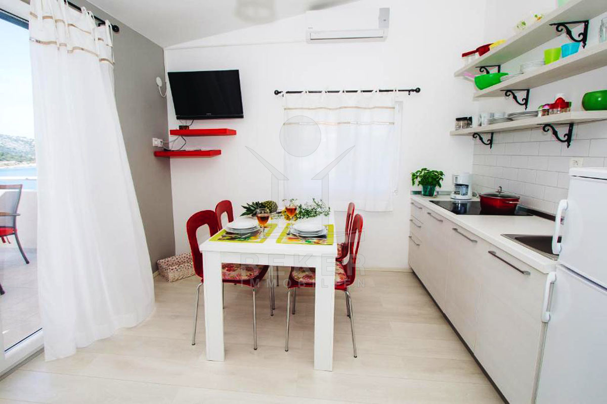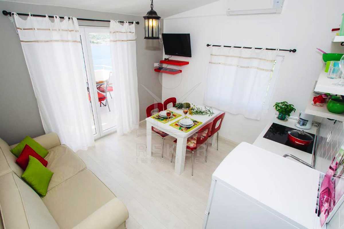 Das Apartmenthaus mit 4 Wohneinheiten befindet sich in einer hervorragenden Lage auf der idyllischen Insel Kaprije. Nur 50 Meter vom schönen Strand und 400 Meter vom Dock entfernt, bieten die Wohneinheiten die perfekte Kombination aus Ruhe und Nähe zum Wasser. Kaprije ist bekannt für seine unberührte Natur, kristallklares Wasser und die malerischen Buchten, die zum Erkunden und Entspannen einladen. Die Insel bietet auch einige charmante Restaurants, Bars und Geschäfte, die alle bequem zu Fuß erreichbar sind. Als Urlaubsziel oder für dauerhaftes Wohnen ist dieses Apartmenthaus eine wahre Perle inmitten der kroatischen Inselwelt.
