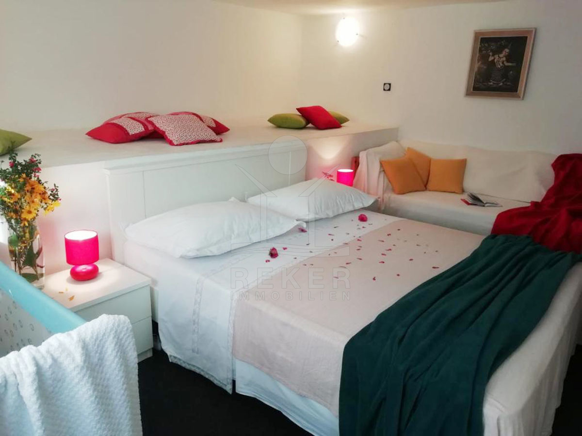 Im Dachgeschoss (58 m²) befinden sich 2 Apartments mit je einem Schlafzimmer, die jeweils über einen Balkon mit Panoramablick auf das Meer verfügen.