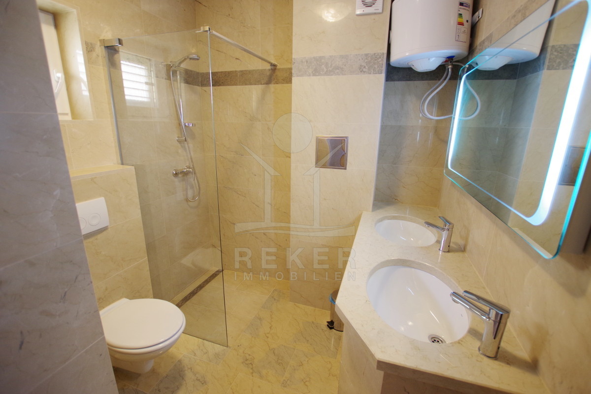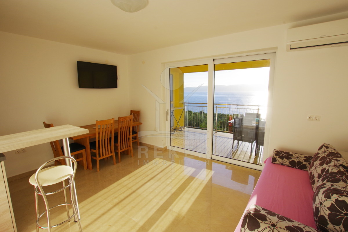 Das Apartmenthaus ist mit einer Klimaanlage ausgestattet und bereits möbliert. Sie besteht aus drei Zweizimmerwohnungen und drei Einzimmerwohnungen. Jede Zweizimmerwohnung verfügt über ein geräumiges Wohn- und Esszimmer mit Küche, zwei Schlafzimmer, zwei Badezimmer, eine Toilette und einem Balkon. Einzimmerwohnung besteht aus einem Wohn- und Esszimmer mit Küche, einem Schlafzimmer, einem Badezimmer, einer Toilette und einem Balkon. Der Panoramablick auf das Meer machen jedes Apartment zu einem luxuriösen Erlebnis.