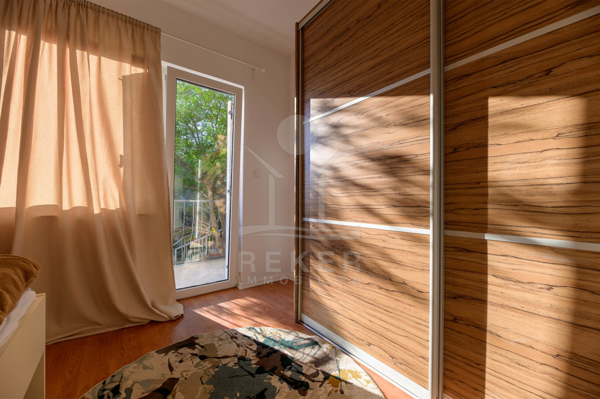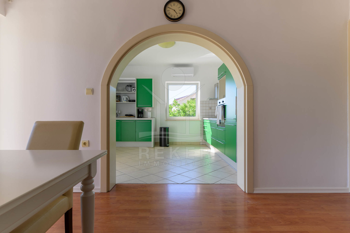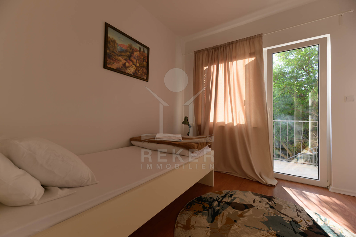Das Haus befindet sich in einer schönen Wohngegend in Lucovo und besticht durch seine idyllische Lage zwischen üppiger Vegetation und Bäumen. Sie können hier inmitten der Natur entspannen und die Ruhe genießen. Besonders reizvoll ist die Nähe zum Meer - nur 150 Meter entfernt können Sie das kristallklare Wasser der Adria erreichen. Ob Sie am Strand entspannen, schwimmen oder Wassersportaktivitäten nachgehen möchten, alles ist in greifbarer Nähe. Zudem sind auch verschiedene Einkaufsmöglichkeiten, Restaurants und Cafés leicht erreichbar. Die Umgebung bietet zudem zahlreiche Möglichkeiten für Outdoor-Aktivitäten wie Wandern, Radfahren oder Erkundungstouren entlang der Küste.