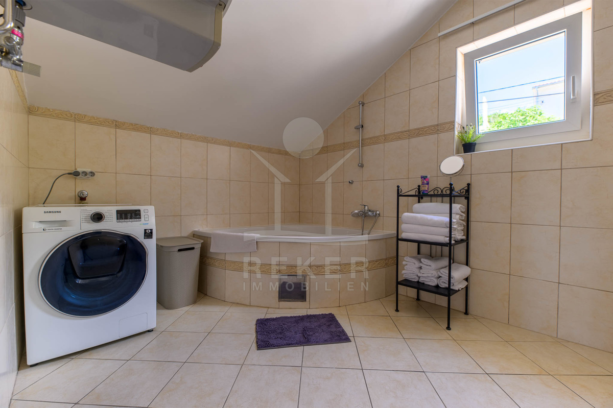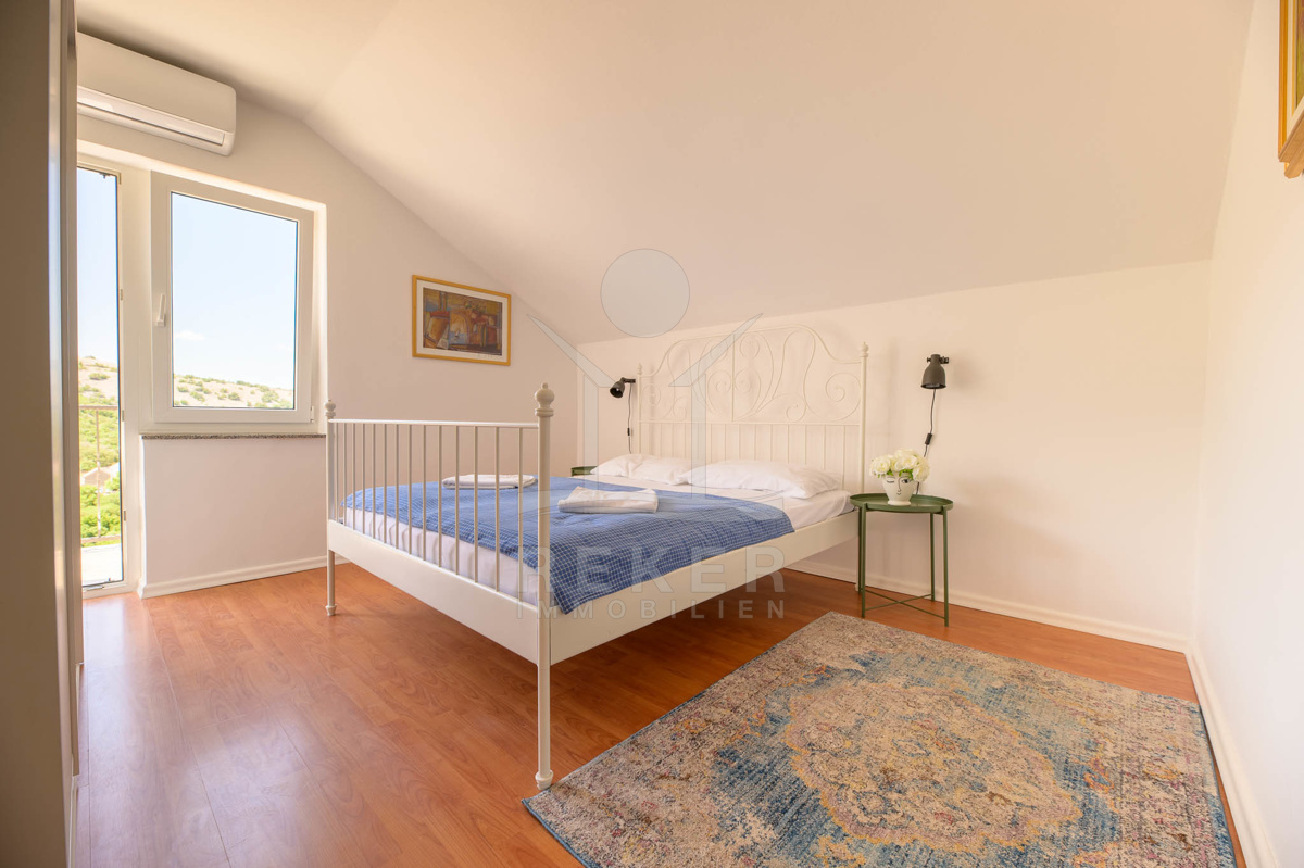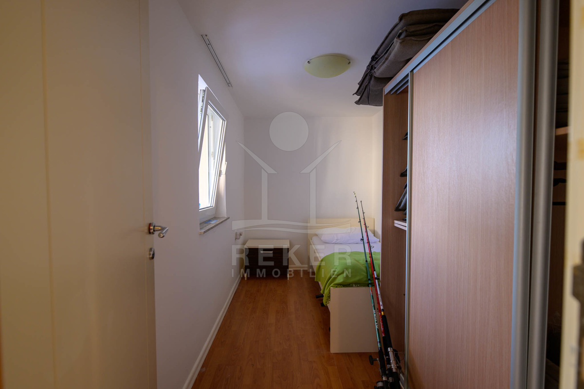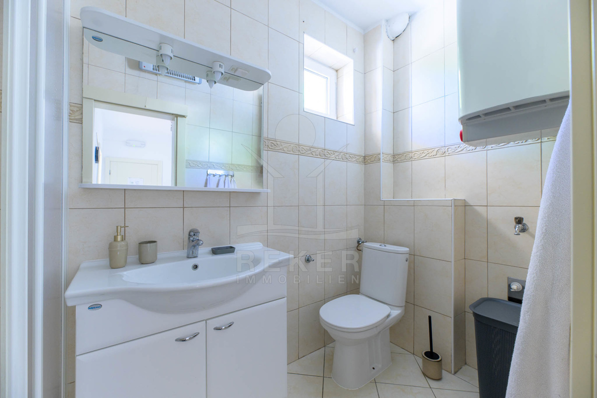 Das Haus befindet sich in einer schönen Wohngegend in Lucovo und besticht durch seine idyllische Lage zwischen üppiger Vegetation und Bäumen. Sie können hier inmitten der Natur entspannen und die Ruhe genießen. Besonders reizvoll ist die Nähe zum Meer - nur 150 Meter entfernt können Sie das kristallklare Wasser der Adria erreichen. Ob Sie am Strand entspannen, schwimmen oder Wassersportaktivitäten nachgehen möchten, alles ist in greifbarer Nähe. Zudem sind auch verschiedene Einkaufsmöglichkeiten, Restaurants und Cafés leicht erreichbar. Die Umgebung bietet zudem zahlreiche Möglichkeiten für Outdoor-Aktivitäten wie Wandern, Radfahren oder Erkundungstouren entlang der Küste.