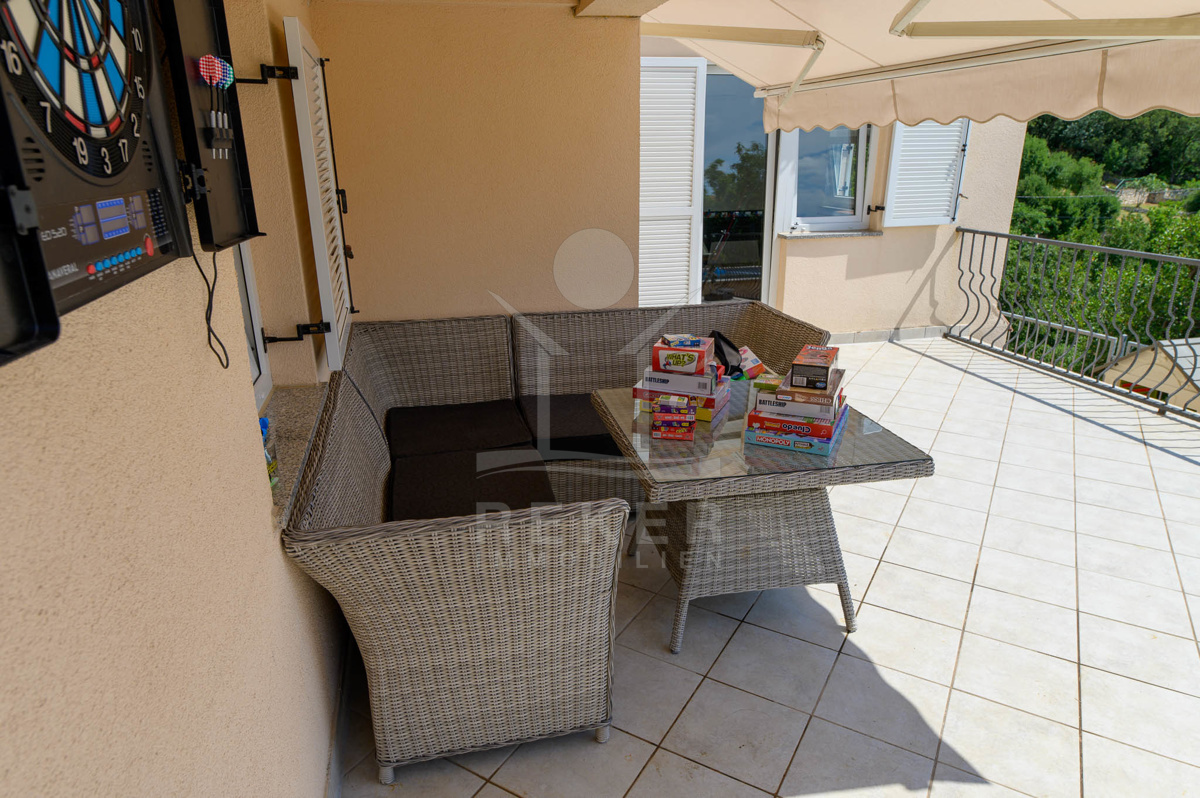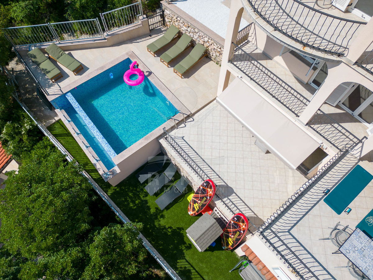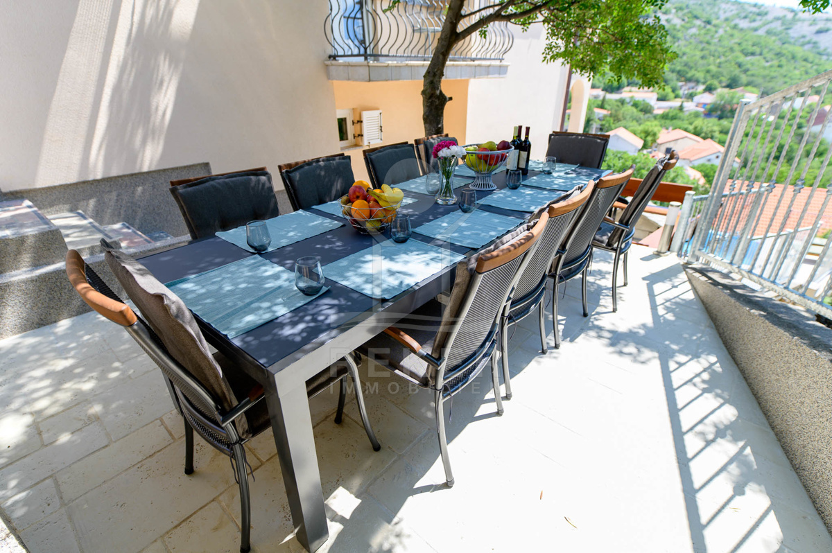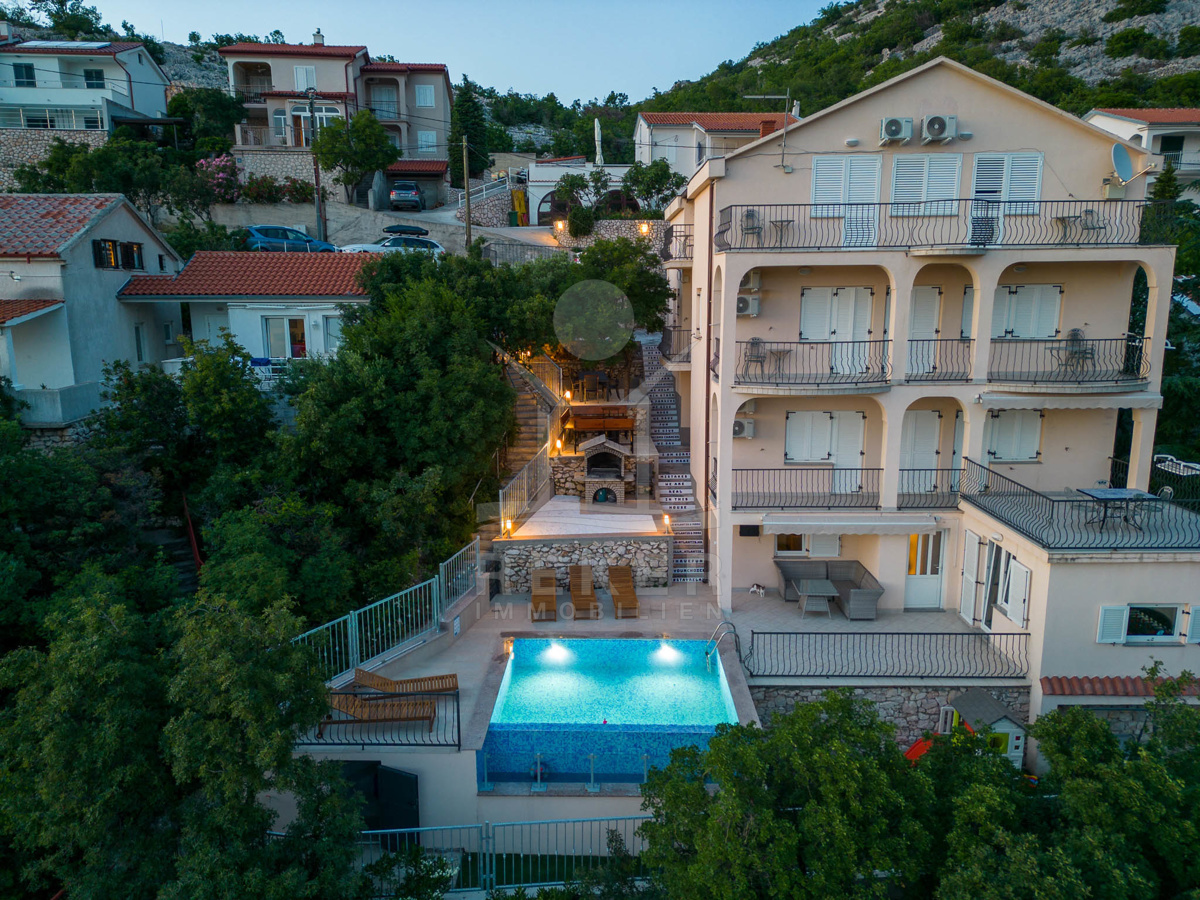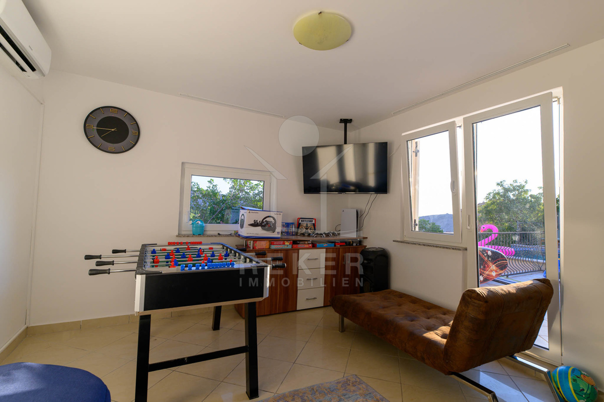 Darüber hinaus befindet sich oberhalb des Grundstücks ein traditioneller Steingrill, der perfekt für gemeinsame Grillabende geeignet ist. Zusätzlich ist ein Spielplatz für die kleinen Gäste vorgesehen. Mit ausreichend Parkplätzen für vier Fahrzeuge ist dieses Apartmenthaus eine rundum perfekte Wahl für Wohnkomfort und Entspannung.