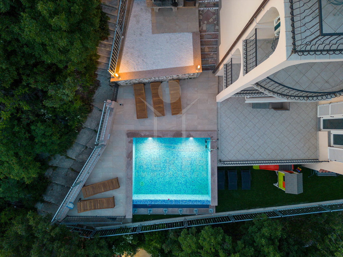 Die Anlage befindet sich auf einem Hanggrundstück von 490 m² und ist umrahmt von einer betonierten Mauer und einem niedrigen Zaun. Mit insgesamt 4 Etagen und einer Gesamtfläche von 440 m² bietet das Gebäude viel Raum für Wohnungen. Das Haus strahlt einen besonderen Charme aus und ist ideal für Investoren oder mehrere Familien, die gemeinsam leben möchten.