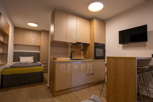Hier befindet sich ein Studio-Apartment mit einer Wohnfläche von 24 m² und verfügt über eine Küchenzeile und Bad.