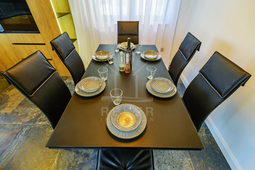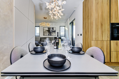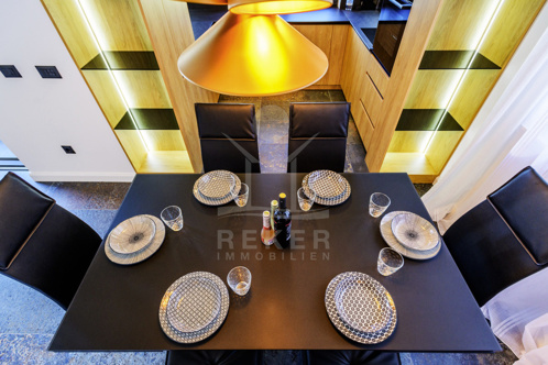 Die geräumige Immobilie wird vollständig möbliert und mit exklusiver Designer-Einrichtung angeboten. Im Erdgeschoss befinden sich 4 Wohnungen unterschiedlicher Größe: Die erste Wohneinheit verfügt über ein Wohn-, Ess- und Küchenbereich mit einer Wohnfläche von 64 m² und eine weitere Wohneinheit von 36 m² mit einem Schlafzimmer.