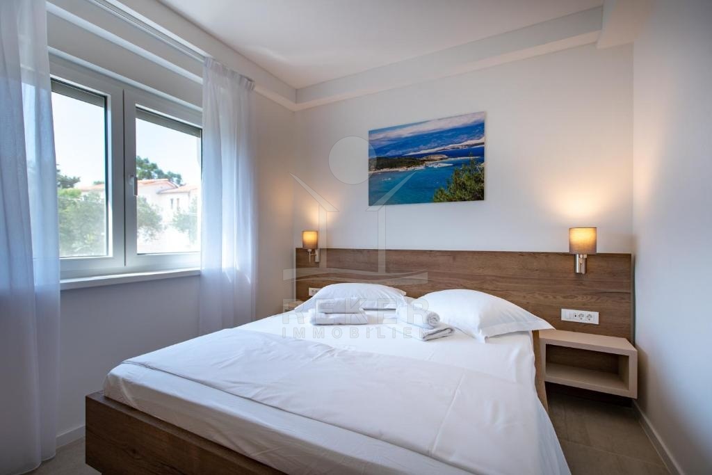 Die Apartments sind mit einer Klimaanlage, Fußbodenheizung und hochwertigen Möbel ausgestattet. Sechs Wohneinheiten sind für die Vermietung und den Tourismus vorgesehen. Ein Apartment ist für den Service bestimmt - Hausmeisterwohnung. Jede Wohneinheit verfügt über 2 Schlafzimmer, 1 Wohnzimmer, 1 Küche, 1 Badezimmer/WC und großzügige Terrassen mit herrlichem Blick auf Lopar. Des Weiteren verfügt das Haus über 1 Wasch- und Trockenraum und 1 Abstellraum rundet das Angebot ab.