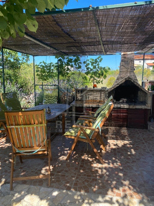 Die Außenanlage des Hauses ist ein Ort der Entspannung und Geselligkeit zugleich. Mit einem Grill und einem überdachten Bereich lädt sie zu gemeinsamen Stunden ein. Der Platz bietet Schutz vor der Sonne und ist der ideale Ort, um Mahlzeiten im Freien zu genießen. Diese Immobilie ist perfekt für alle, die das mediterrane Lebensgefühl in vollen Zügen genießen möchten.