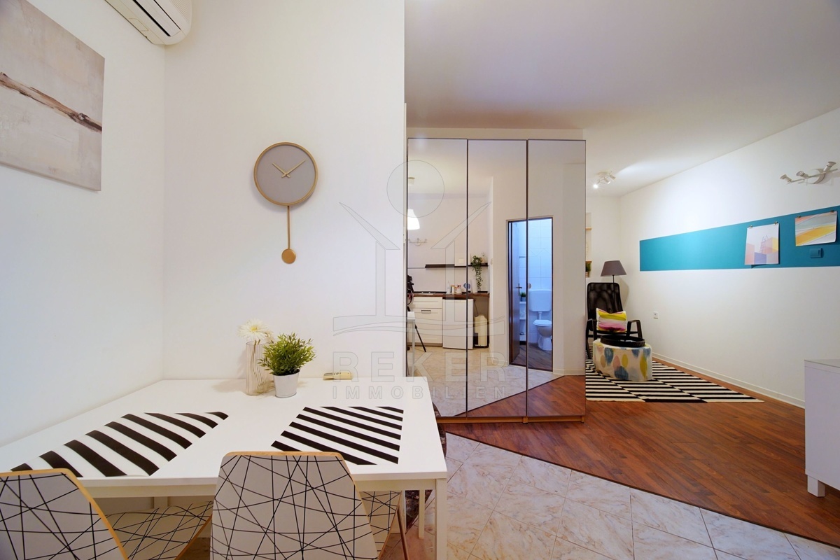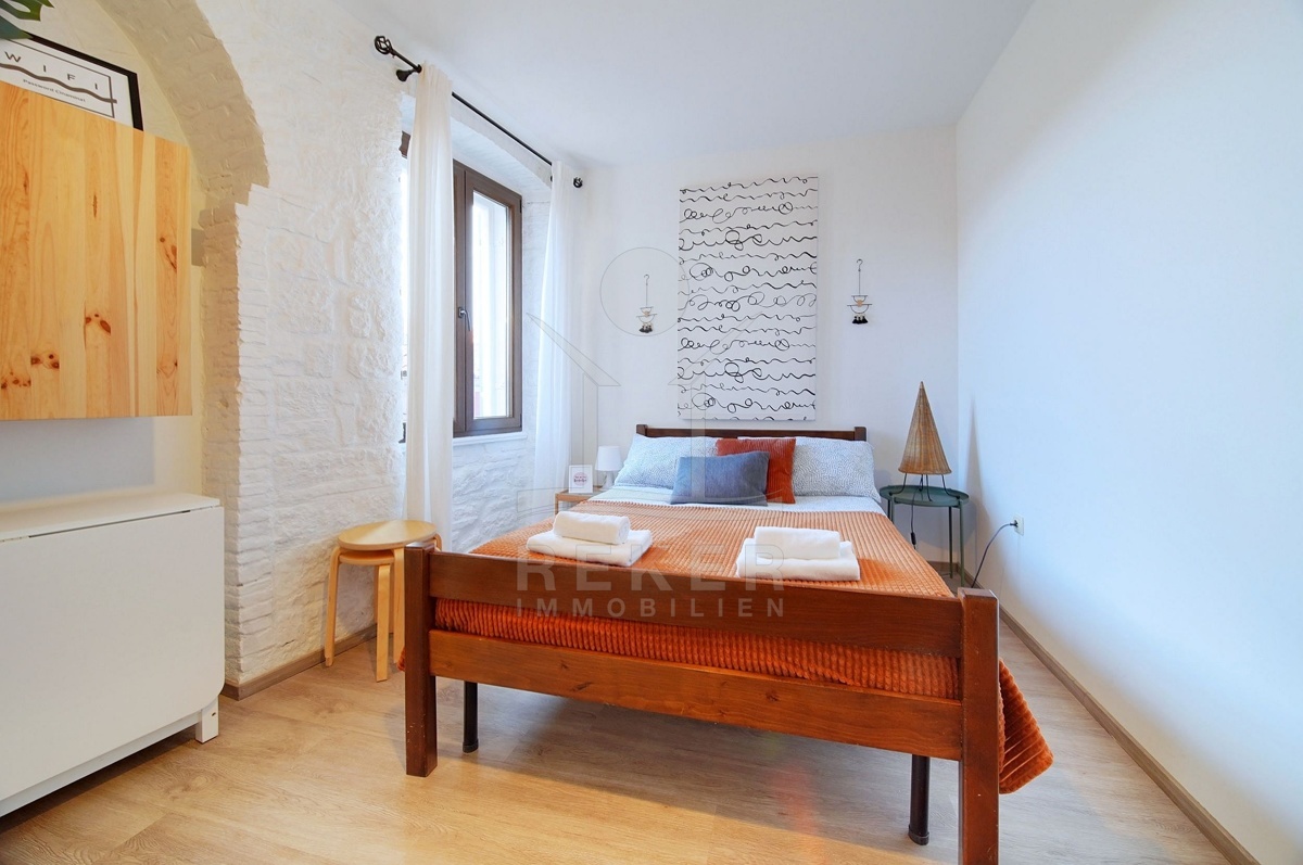 Das Anwesen liegt im Herzen von Rovinj, nur wenige Schritte vom Meer und der pulsierenden Uferpromenade entfernt. Die zentrale Lage macht es zu einem idealen Ausgangspunkt, um die Sehenswürdigkeiten und Annehmlichkeiten der Stadt zu erkunden. Eine Vielzahl von Dienstleistungen befinden sich in der Nähe, darunter Cafés, Restaurants, Geschäfte, Schulen und medizinische Einrichtungen. Für sportliche Aktivitäten bieten sich der nahegelegene Basketballplatz, der Waldpark Punta Corrente oder das öffentliche Schwimmbad an. Die Autobahneinfahrt Kanfanar ist nur 15 km entfernt und der Flughafen Pula erreichen Sie nach 40 km. Mit den zahlreichen Sehenswürdigkeiten in der Umgebung wie dem ornithologischen Reservat Palud oder der Altstadt von Rovinj bietet diese Lage sowohl Erholung als auch kulturelle Vielfalt.