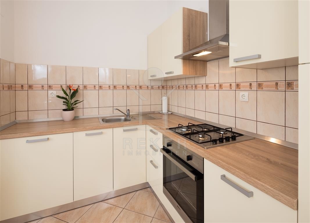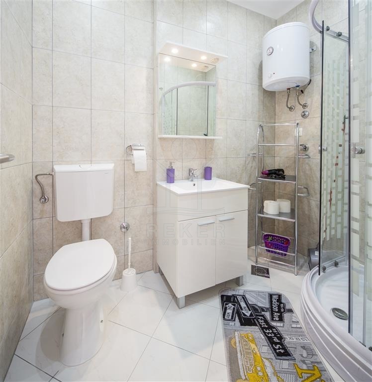 Das Apartmenthaus befindet sich auf einem 670 m² großen Grundstück und besteht aus einem Gebäude mit drei Etagen und einem Erdgeschoss. Jede Etage verfügt über denselben Grundriss und bietet Platz für eine Einzimmerwohnung mit einer Fläche von 45 m² sowie eine Zweizimmerwohnung mit einer Fläche von 65 m². Die Balkone verwöhnen Sie mit herrlichem Blick auf das Meer und die Umgebung. Dieses vielfältige Angebot an Wohneinheiten macht das Haus ideal für verschiedene Mieterbedürfnisse.