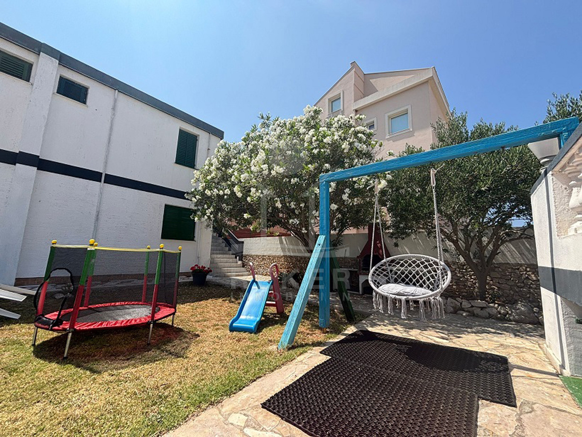 In Stara Novalja, nur wenige Gehminuten vom Sandstrand Planjka entfernt, wartet ein charmantes Apartmenthaus auf neue Bewohner. Hier genießen Sie Ruhe und gleichzeitig die Nähe zum Meer. Für Ihr Auto gibt es einen großzügigen, ummauerten Parkplatz mit 65 m². Direkt darunter befindet sich eine gemütliche Taverne.