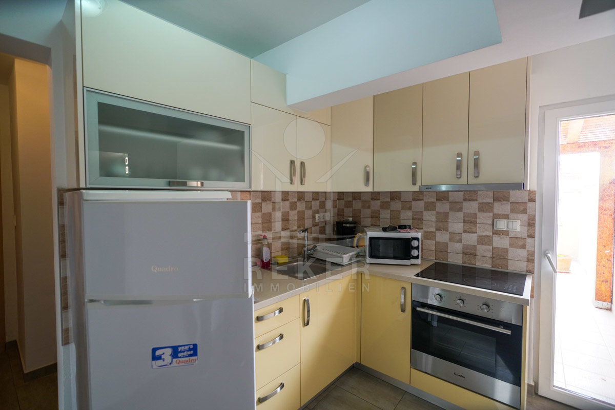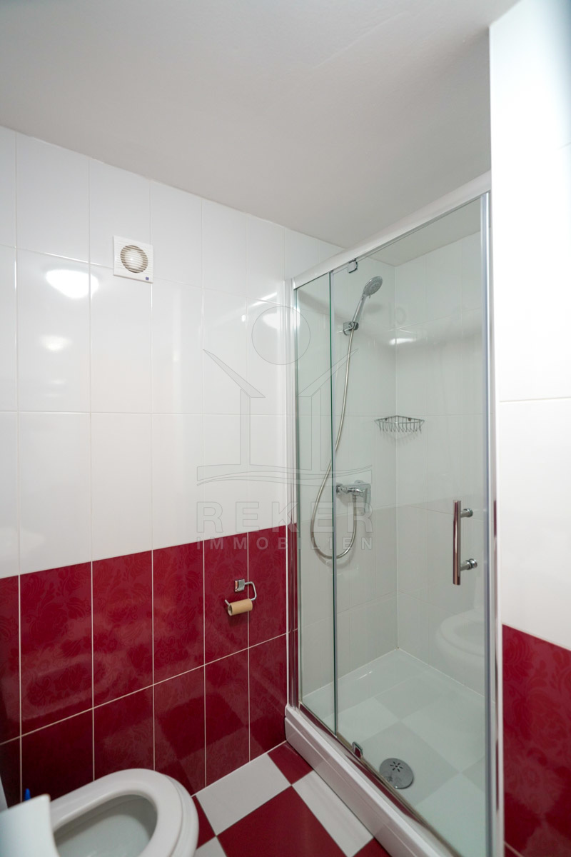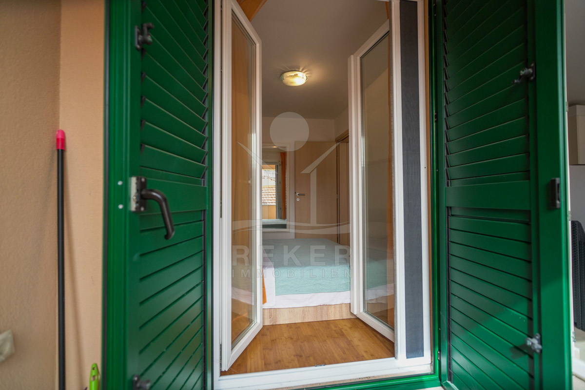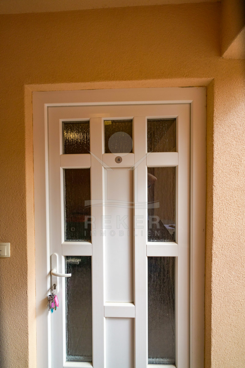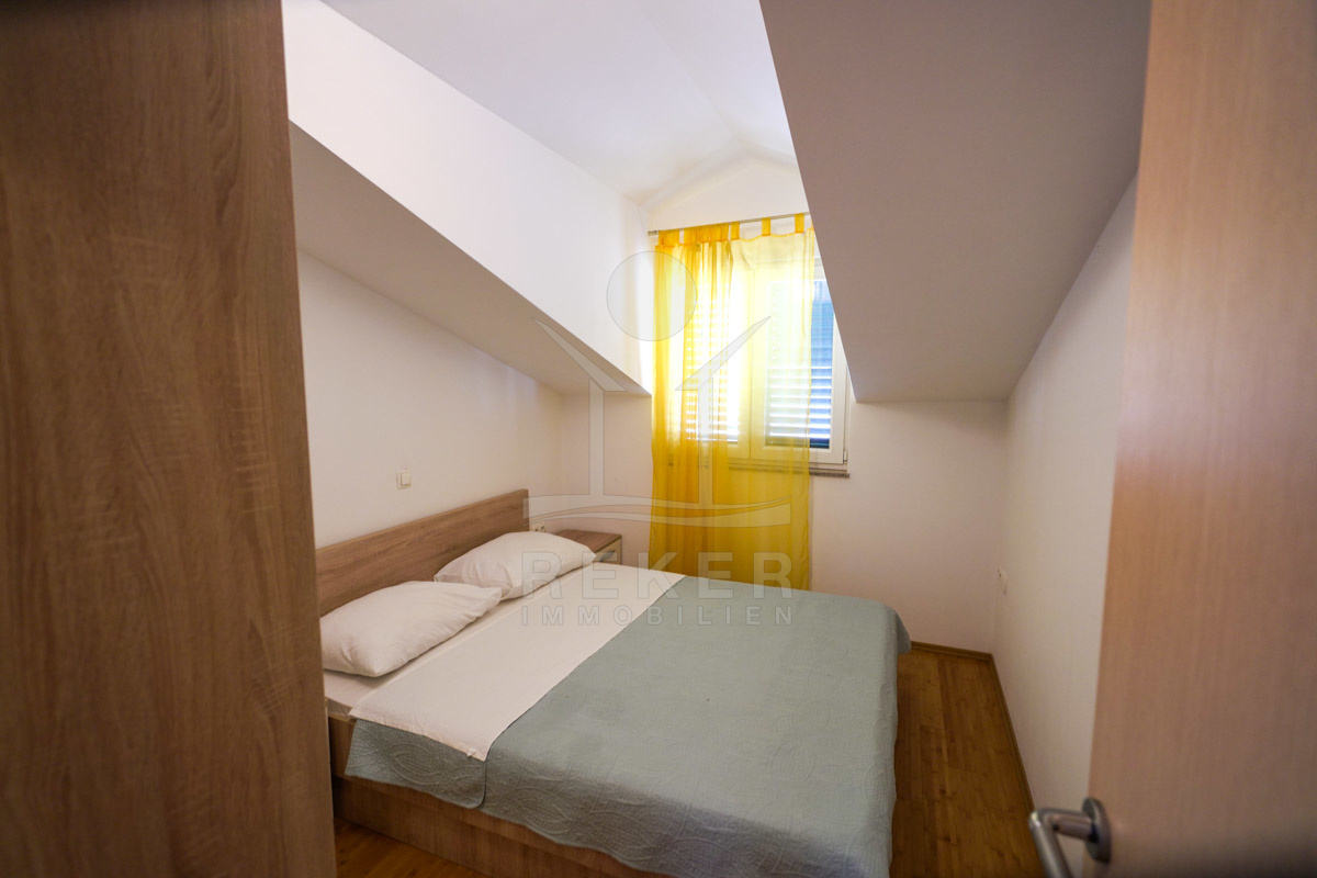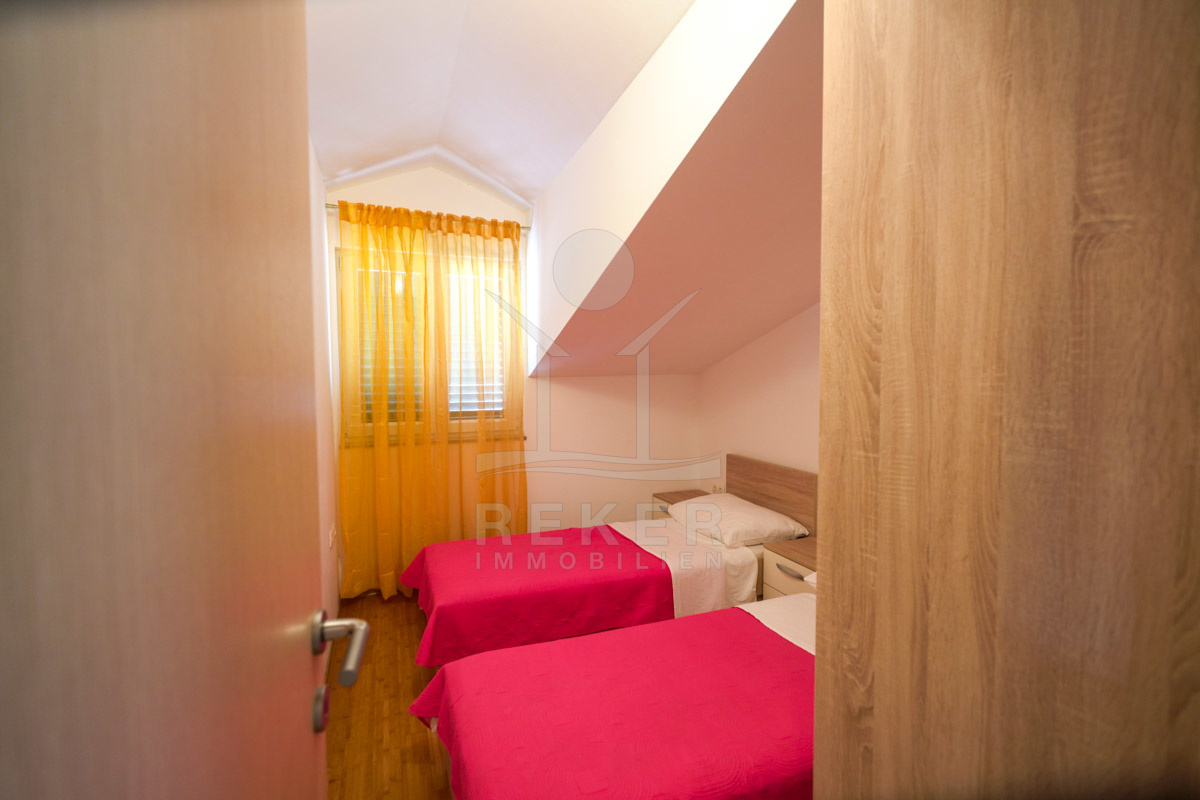 Das Haus in Vodice bietet vielfältige Wohnmöglichkeiten auf drei Etagen. Im Erdgeschoss und ersten Stock befinden sich jeweils voll möblierte Wohnungen mit 2 Schlafzimmern, Küche, Wohnzimmer und Badezimmer. Der 2. Stock beherbergt eine geräumige 3-Zimmerwohnung mit Zugang zur Terrasse, die bereits für einen Whirlpool vorbereitet ist. Der Außenbereich bietet einen Blick auf das Meer und einen überdachten Essbereich im Freien.