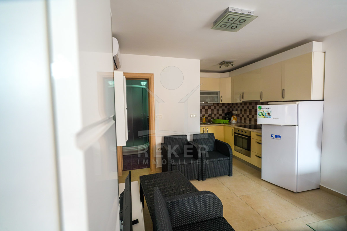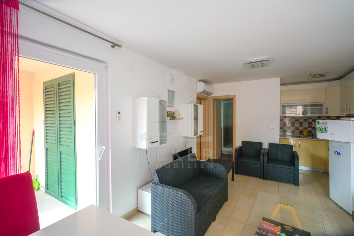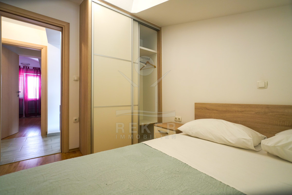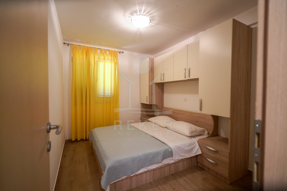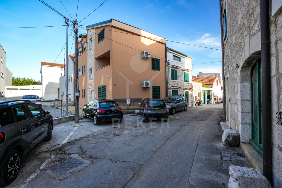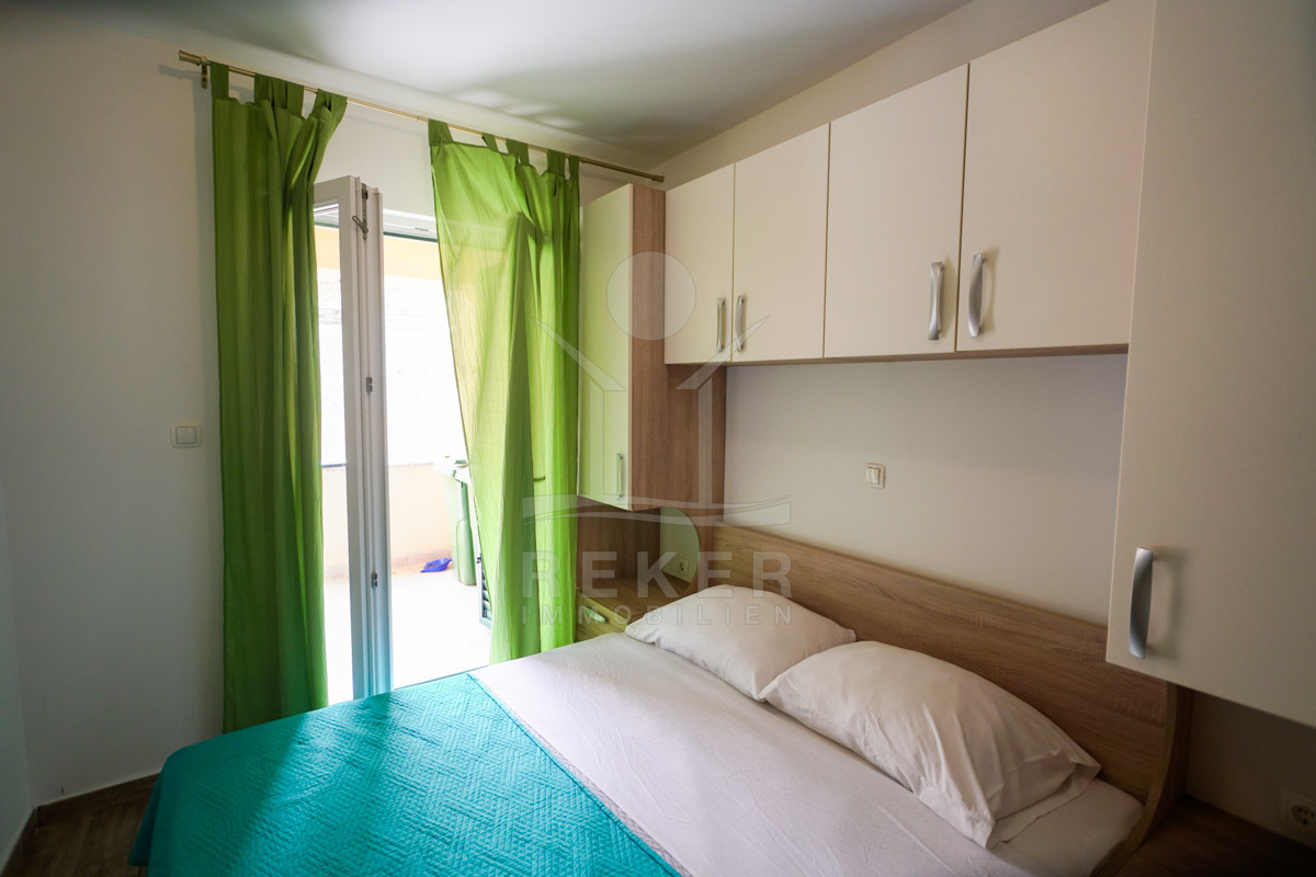 Das Apartmenthaus liegt nur ca. 150 m vom Meer entfernt und Gehweite zum Stadtzentrum von Vodice. Die schöne Küstenstadt liegt in einer weiten Bucht, nur 11 km nordwestlich von Šibenik entfernt. Die zahlreichen historischen Sehenswürdigkeiten, wie die Kirche Sveti Kriz oder die Stadtmauer aus dem 17. Jahrhundert, laden zu spannenden Entdeckungstouren ein. Auch der Nationalpark Krka mit seinen 7 Wasserfällen ist einen Besuch wert und nur ca. 15 km entfernt. Vodice selbst bietet seinen Besuchern ein reichhaltiges Freizeit- und Sportangebot. Die breite Bucht lädt zum Baden und Entspannen ein, während der moderne Jachthafen ein Treffpunkt für Boots- und Yachtliebhaber ist. Zahlreiche Restaurants, Cafés, Geschäfte und Boutiquen sorgen für Unterhaltung und Shoppingvergnügen. Alles in allem bietet Vodice als pulsierendes Ferienziel, für jeden etwas - sei es Wassersport, Sightseeing, Shopping oder einfach nur die kroatische Lebensart zu genießen.