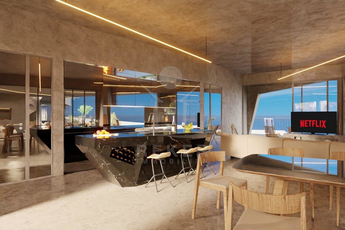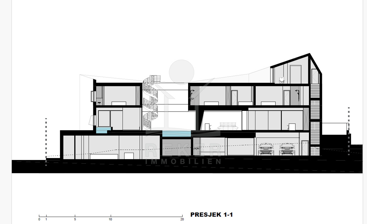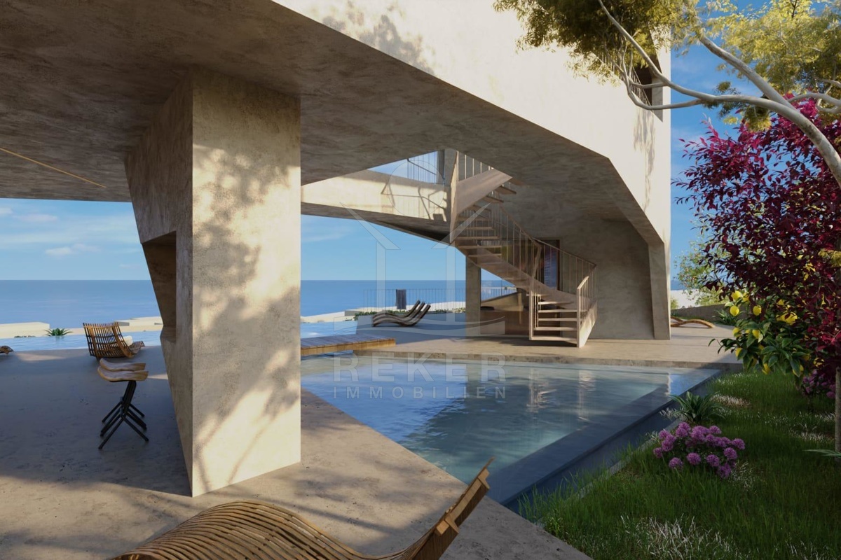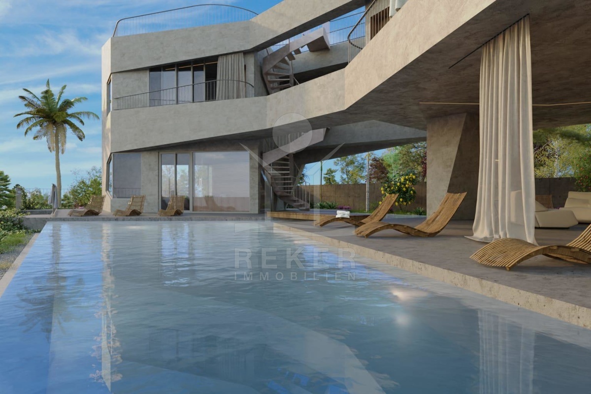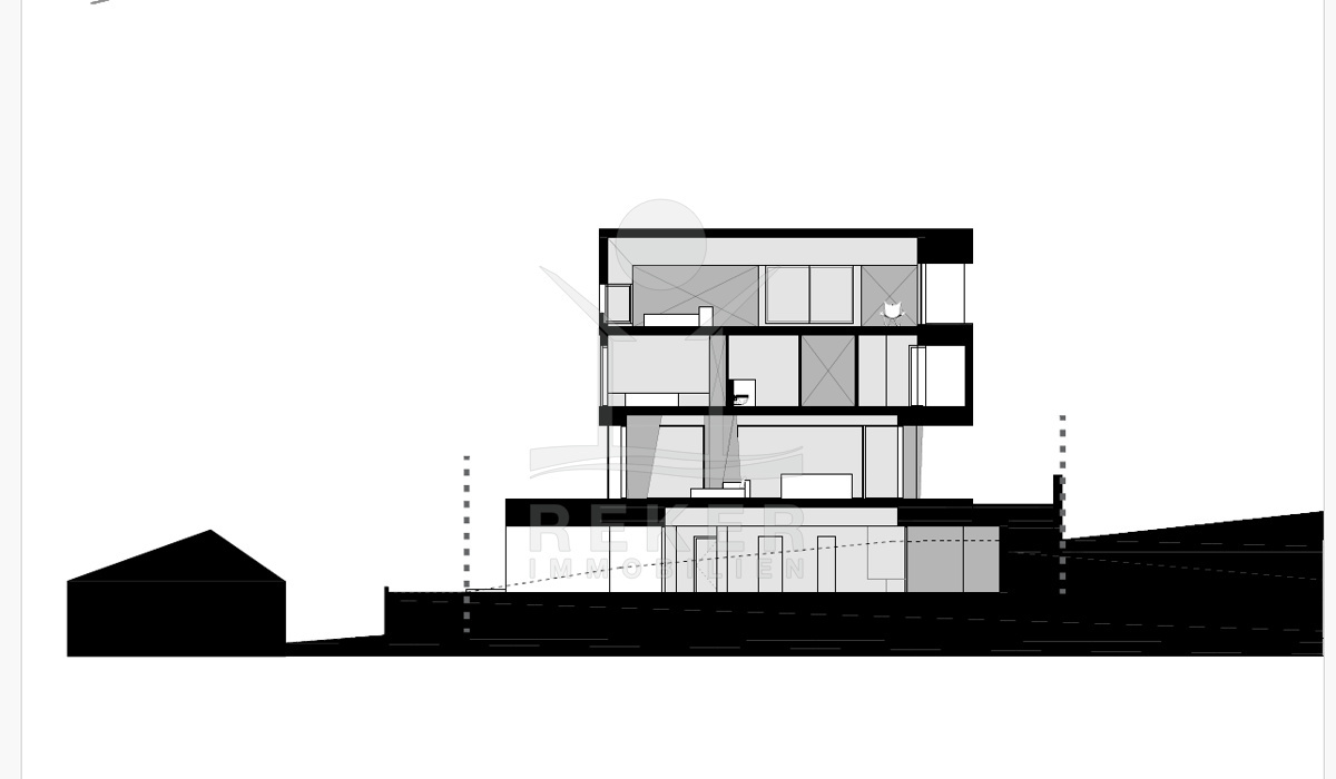Das großzügige Anwesen von 770 m² eignet sich hervorragend für den Bau einer eleganten Villa mit einem Gesamtvolumen von ca. 300 m². Die bereits vorhandenen Bauunterlagen umfassen eine gültige Baugenehmigung sowie ein detailliertes Projekt, das Ihnen die Planungen erheblich erleichtert. Die Villa sieht eine durchdachte Aufteilung über 3 Etagen vor. Im Untergeschoss können vielseitige Räume wie ein Eingangsbereich, eine Tiefgarage, ein Fitnessbereich, eine Konoba (traditioneller Weinkeller), ein Bad sowie Abstellräume und ein Aufzug realisiert werden.