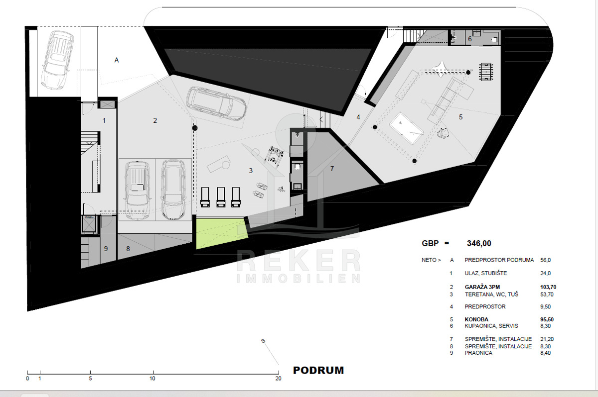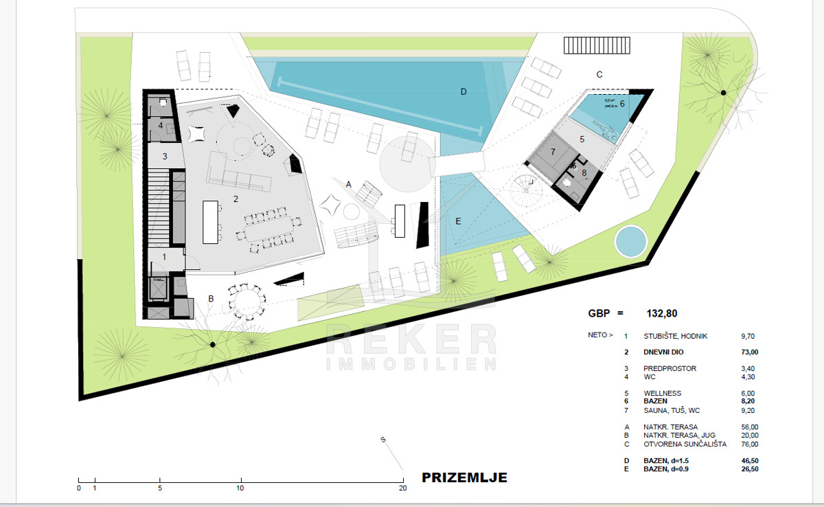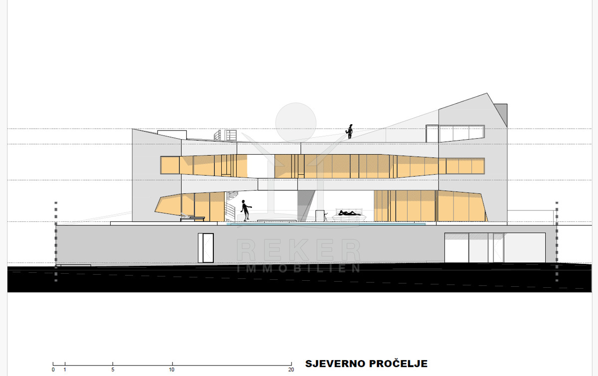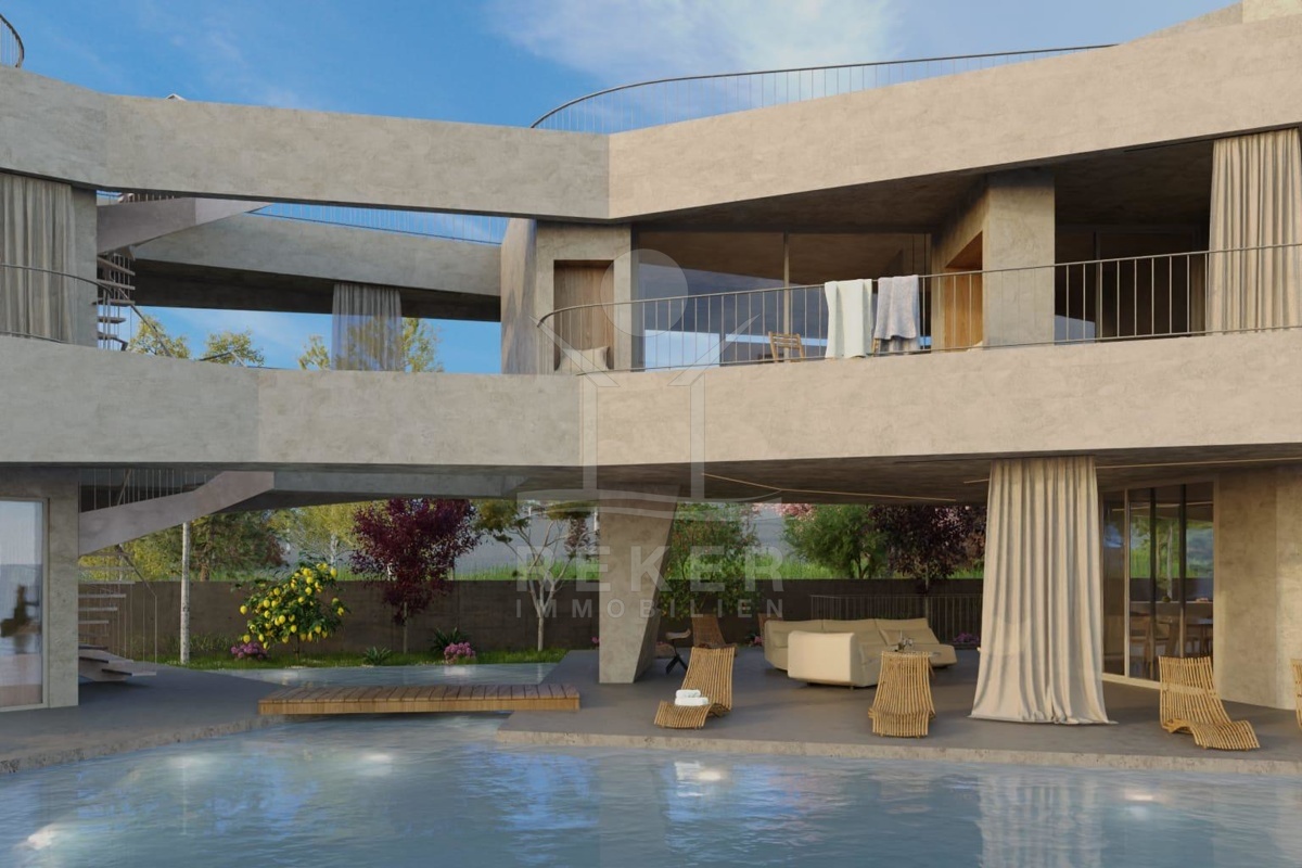 Das großzügige Anwesen von 770 m² eignet sich hervorragend für den Bau einer eleganten Villa mit einem Gesamtvolumen von ca. 300 m². Die bereits vorhandenen Bauunterlagen umfassen eine gültige Baugenehmigung sowie ein detailliertes Projekt, das Ihnen die Planungen erheblich erleichtert. Die Villa sieht eine durchdachte Aufteilung über 3 Etagen vor. Im Untergeschoss können vielseitige Räume wie ein Eingangsbereich, eine Tiefgarage, ein Fitnessbereich, eine Konoba (traditioneller Weinkeller), ein Bad sowie Abstellräume und ein Aufzug realisiert werden.