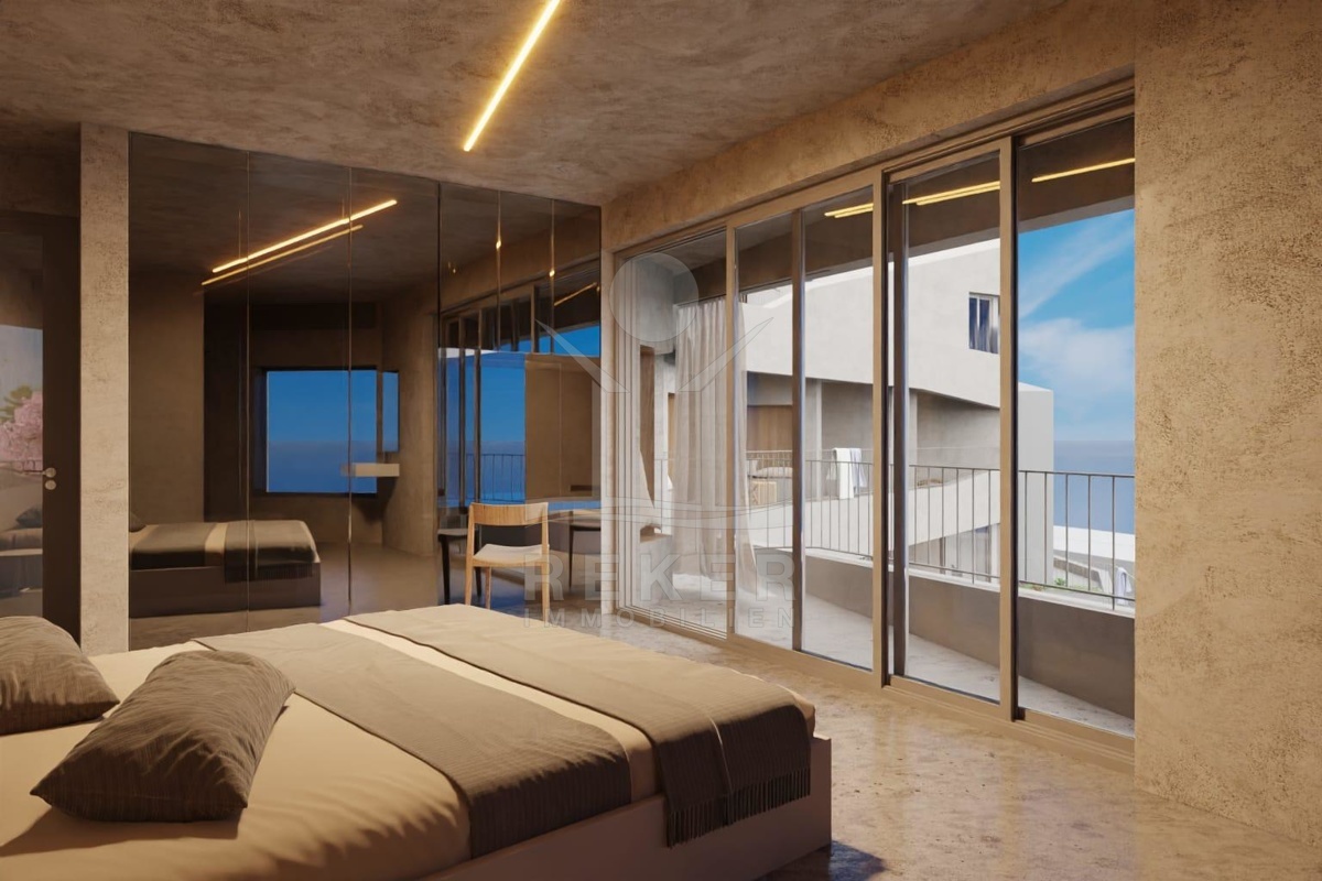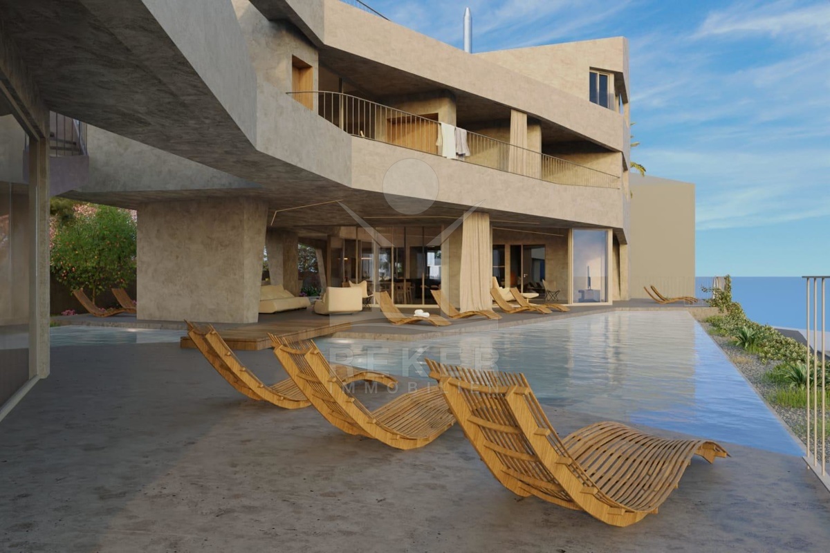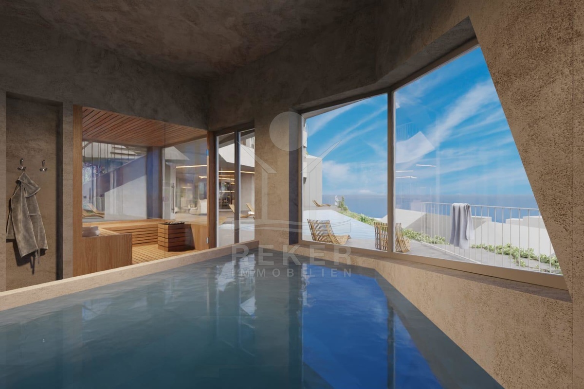 Das Erdgeschoss bietet einen einladenden Eingangsbereich mit WC, einen Wellnessbereich mit Sauna sowie großzügige Terrassen, die teilweise überdacht sind und direkten Zugang zu einem Pool bieten. Von diesen Flächen aus haben Sie sensationelle Ausblicke auf das Meer und die umgebende Landschaft. Im Obergeschoss sind die 6 Schlafzimmer vorgesehen, jedes mit eigenem Badezimmer. Diese Etage bietet den zukünftigen Bewohnern Privatsphäre und luxuriösen Komfort.