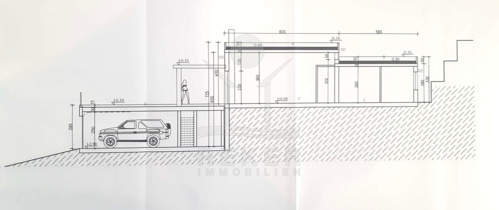 Eine Garage wurde bereits auf dem 840 m² großen Grundstück mit Hanglage errichtet.