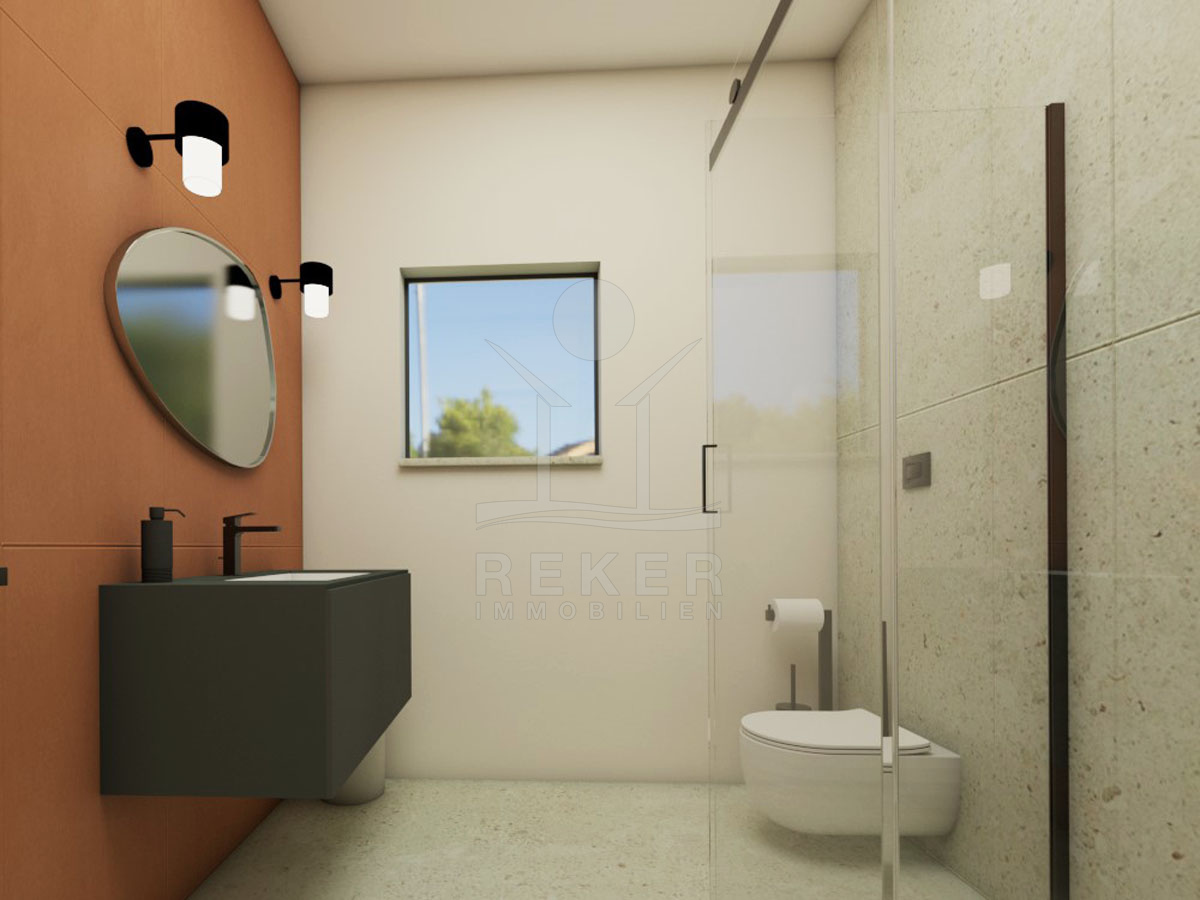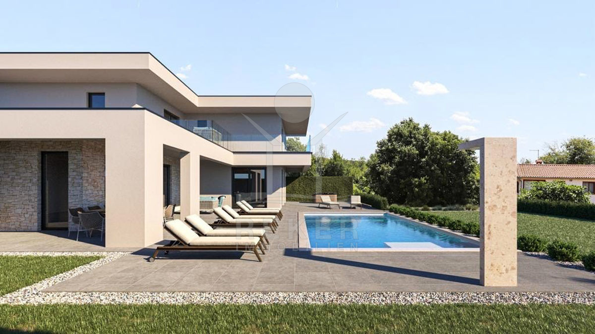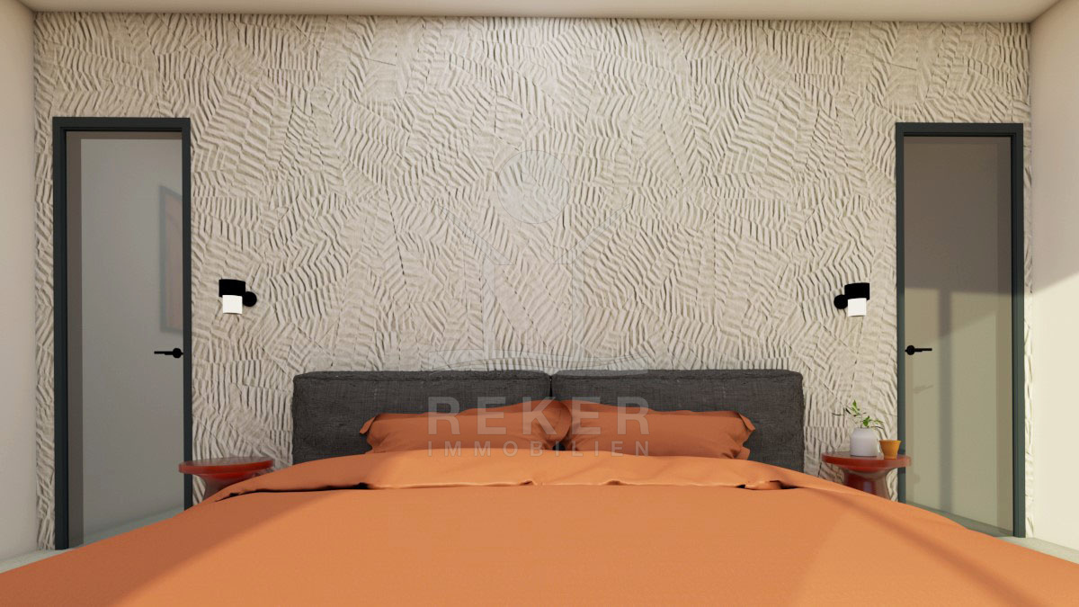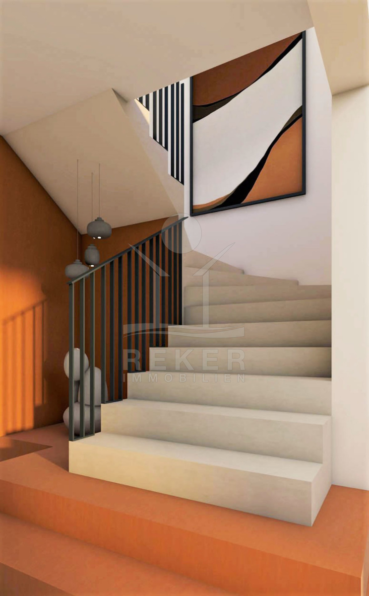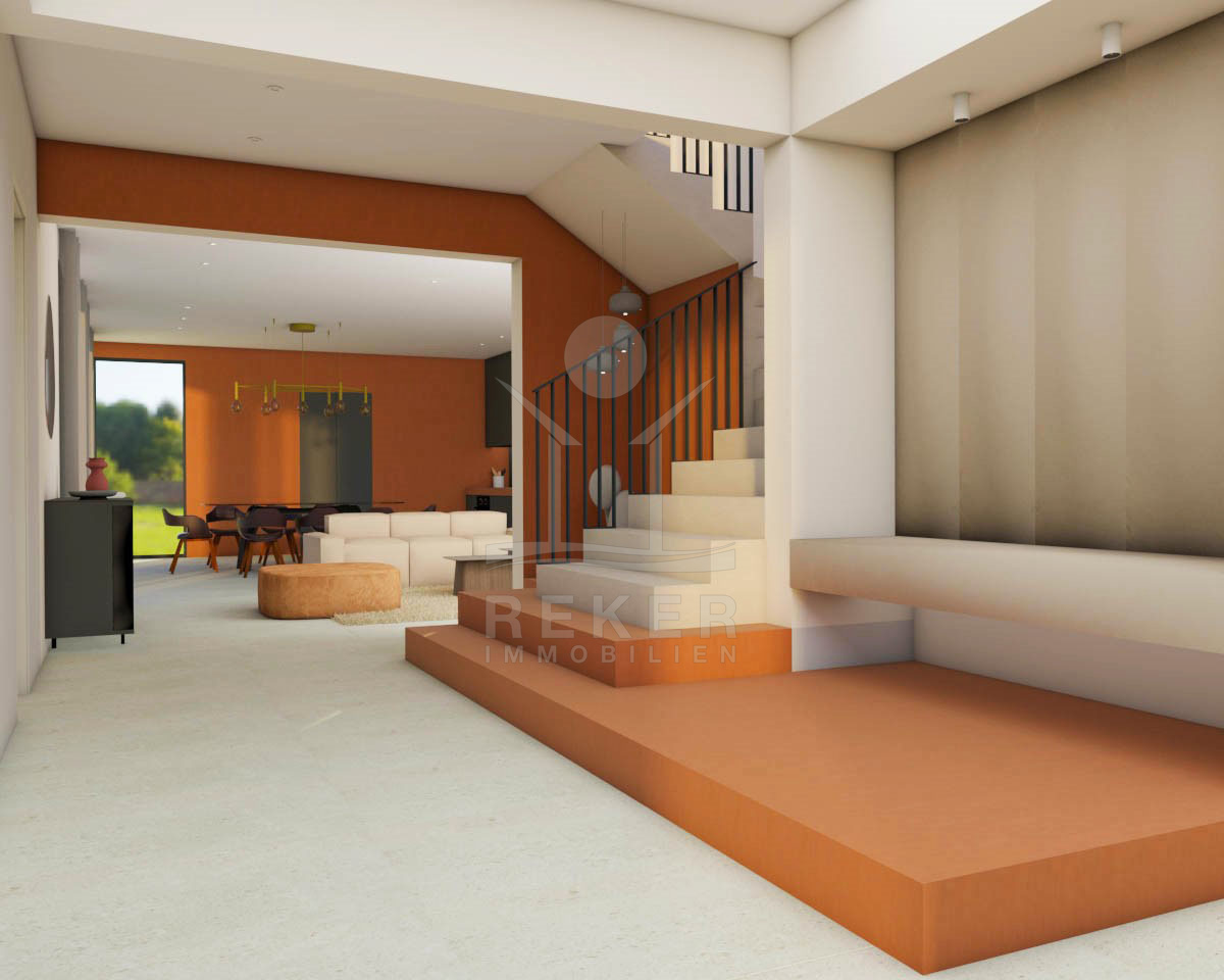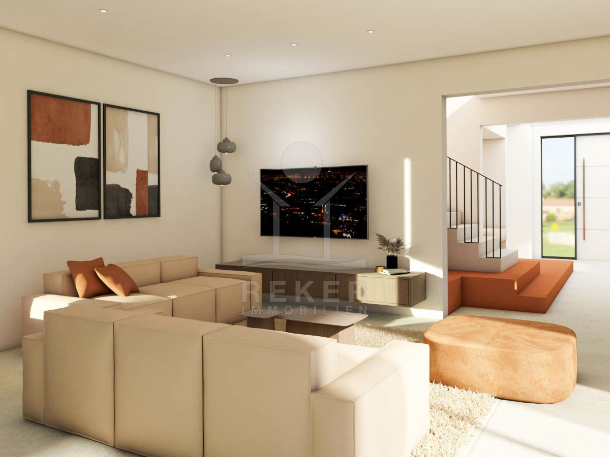 Geplant ist eine stilvolle Villa mit einem netto Wohnbereich von 293 m², die sich über zwei Etagen erstreckt. Zu den Außenbereichen zählen eine großzügige überdachte Terrasse, mehrere Balkone und ein gepflegter Garten, ideal für entspannte Stunden im Freien. Die Innenräume werden großzügig gestaltet und bieten modernen Wohnkomfort.