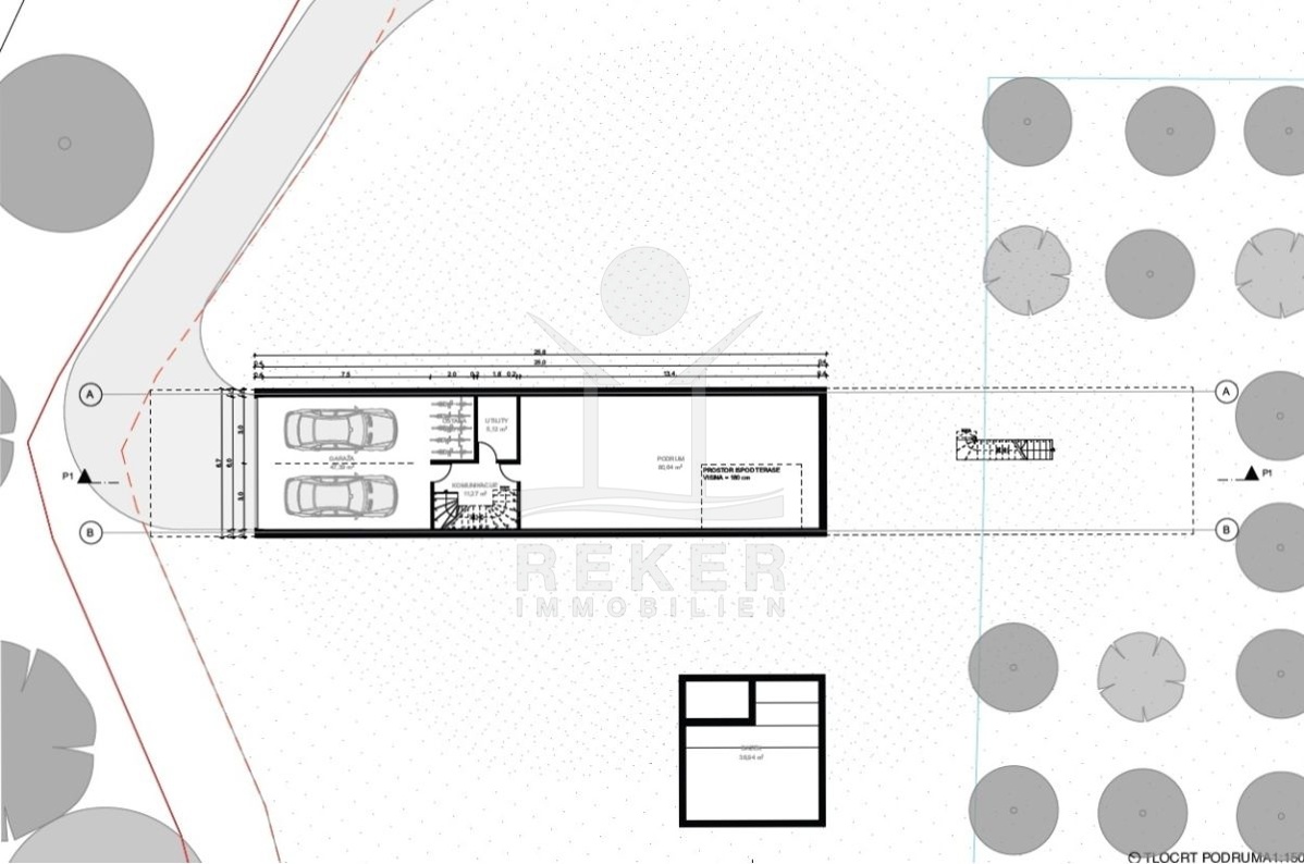 Das Grundstück bietet die Möglichkeit, eine moderne Villa mit einem einzigartigen Design zu errichten. Der Entwurf stammt vom renommierten kroatischen Architekten Idis Turato, was dem Haus eine besondere Note verleiht. Die Baugenehmigung für das Haus ist gültig für den Tourismussektor.
