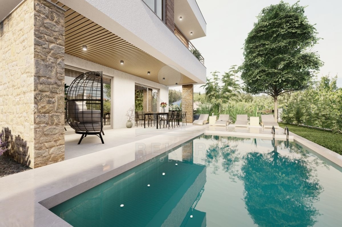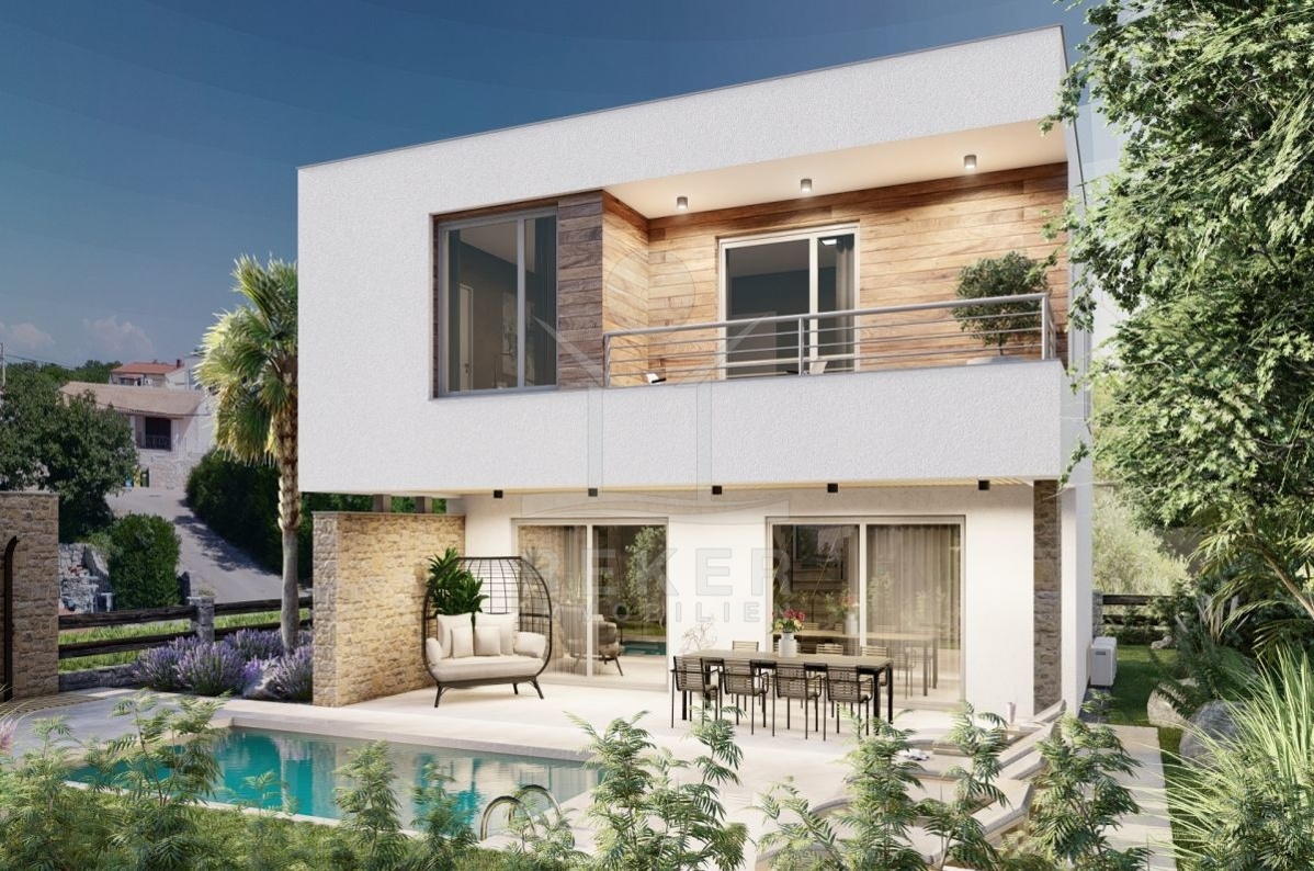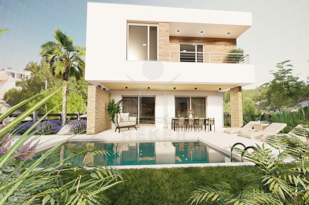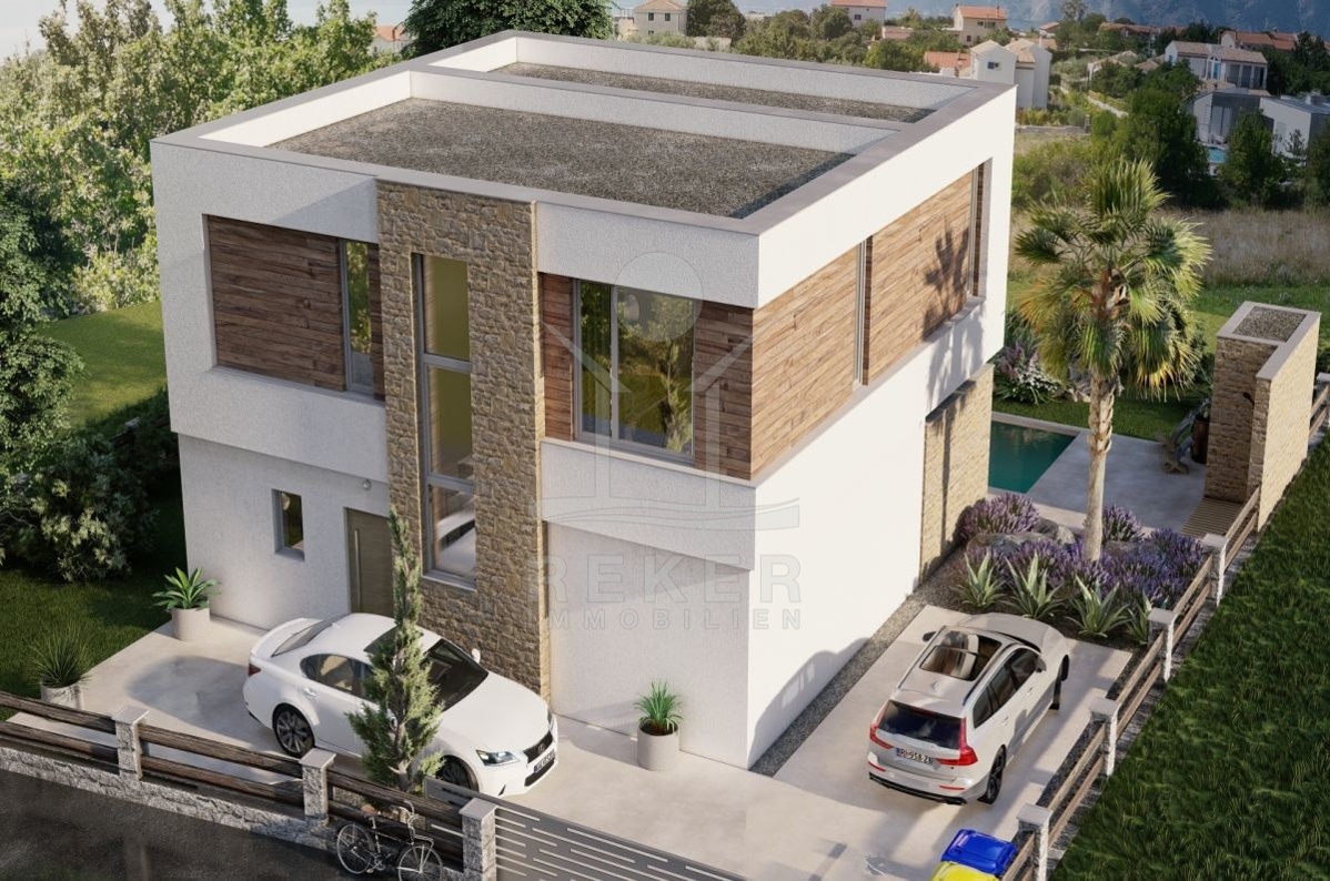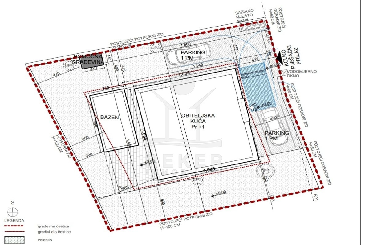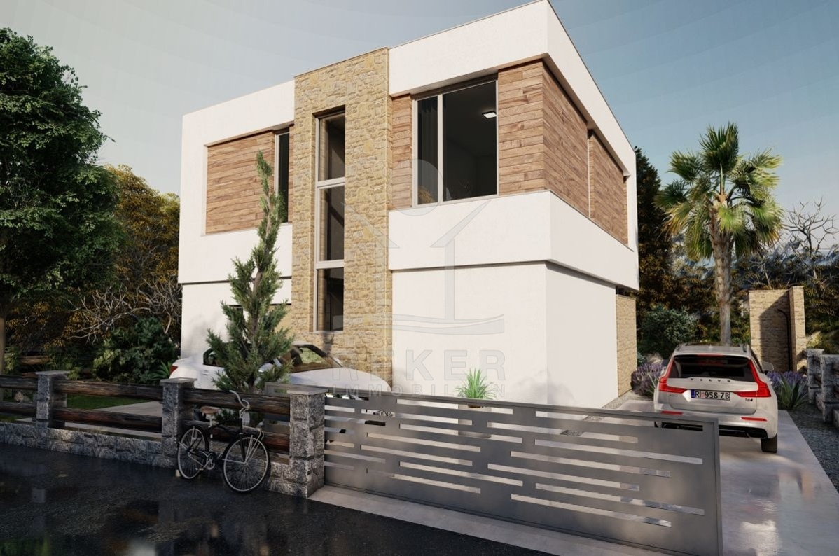 Der zentral gelegene Baugrund hat eine Fläche von 450 m² und bietet somit ausreichend Raum für die Realisierung Ihrer individuellen Wohnträume. Nutzen Sie die Chance, hier Ihr eigenes Zuhause zu schaffen. Bebaubar mit modernem Einfamilienhaus mit Pool. Das Baugrundstück ermöglicht, ein modernes Einfamilienhaus mit Pool zu bauen. Das Haus hat ein Erdgeschoss und ein Obergeschoss, wobei der erste Stock einen Meerblick bietet. Die Zufahrt zum Grundstück erfolgt über eine Hauptstraße, und sämtliche Infrastruktur ist in unmittelbarer Nähe vorhanden. Das Grundstück liegt am Rande einer Grünzone, was einen zusätzlichen landschaftlichen Reiz bietet.