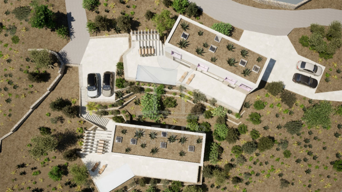 Das geplante Wohnhaus ist als Einfamilienhaus konzipiert und erstreckt sich über zwei oberirdische Etagen, nämlich das Erdgeschoss und die erste Etage. Zusätzlich bietet eine unterirdische Etage Platz für einen Keller. Ein Highlight des Hauses ist der Außenpool, der den Bewohnern eine erfrischende Abkühlung und eine wunderbare Aussicht auf das Meer ermöglicht.