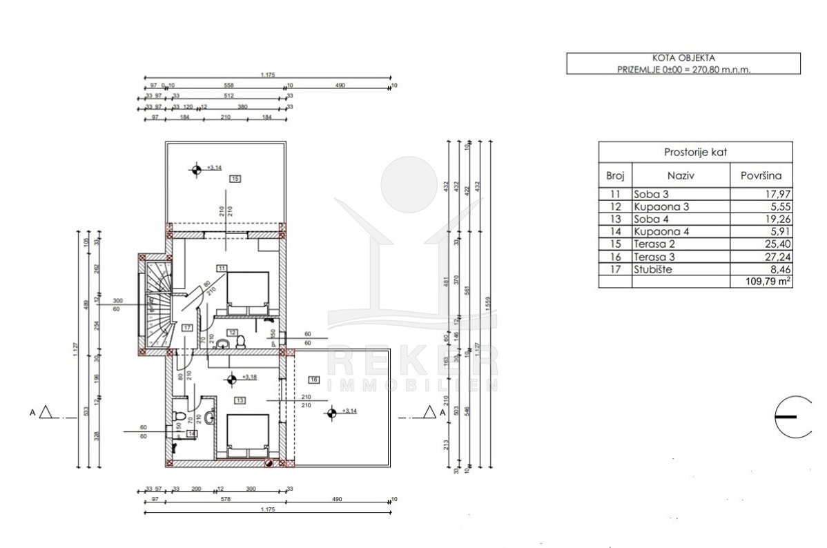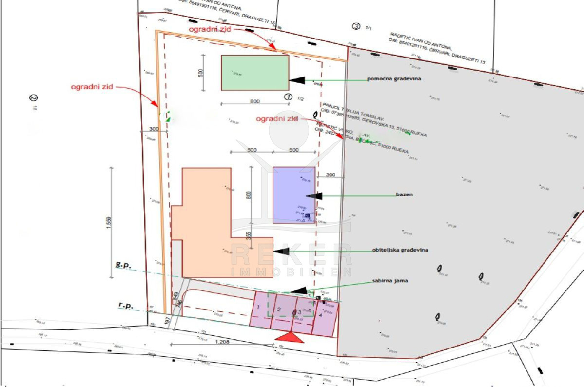 Das Baugrundstück ist bereits vorbereitet für den Bau einer Villa und eines Nebengebäudes. Die Baugenehmigung, Projektdokumentation und die vorbereitenden Erdarbeiten für die Fundamente des Einfamilienhauses mit einer Gesamtfläche von 257,65 m² im Erdgeschoss und ersten Stock sind vorhanden.