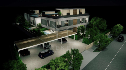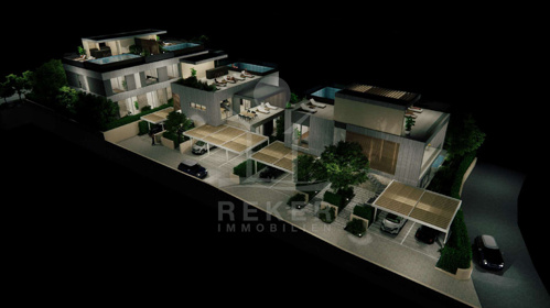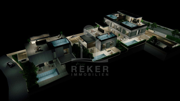 Zum Grundstück gehört ein genehmigungsfähiges Projekt für drei moderne Apartmenthäuser mit insgesamt sieben privaten Pools. Klare Linien, großzügige Glasflächen und eine moderne Architektur fügen sich harmonisch in das mediterrane Umfeld ein. Jedes Haus überzeugt mit gut strukturierten Grundrissen, hochwertiger Ausstattung, privaten Poolbereichen und Carports.