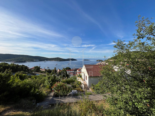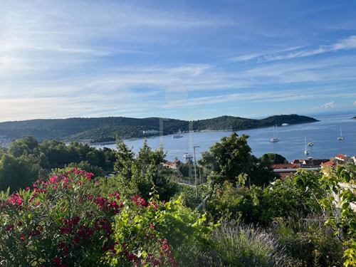 Nur wenige Minuten oberhalb des kleinen Ortes Vis öffnet sich der Blick: weit über die Bucht, den Hafen und das offene Meer. Das 300 m² große Grundstück liegt ruhig am Hang, eingebettet in mediterranes Grün. Die Westausrichtung verspricht Sonne bis in den Abend und traumhafte Sonnenuntergänge. Rundherum stehen bereits einige Häuser, die Umgebung ist aufgelockert und nicht verbaut. In etwa 600 m Entfernung erreicht man das Zentrum und das Meer.