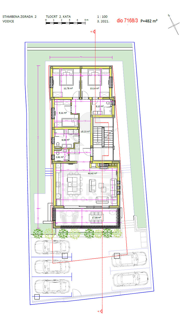 Jedes der genehmigten Gebäude enthält 4 Stockwerke und 3 Wohneinheiten. Balkone und Dachterrassen bilden fabelhafte Rückzugsorte, an denen sich das Leben in ganz neuem Ausmaß genießen lässt.