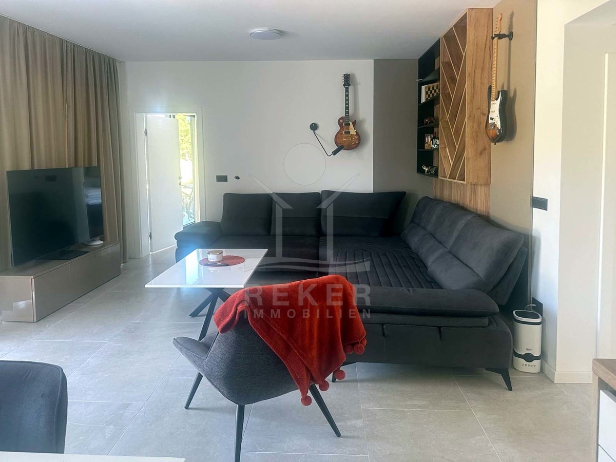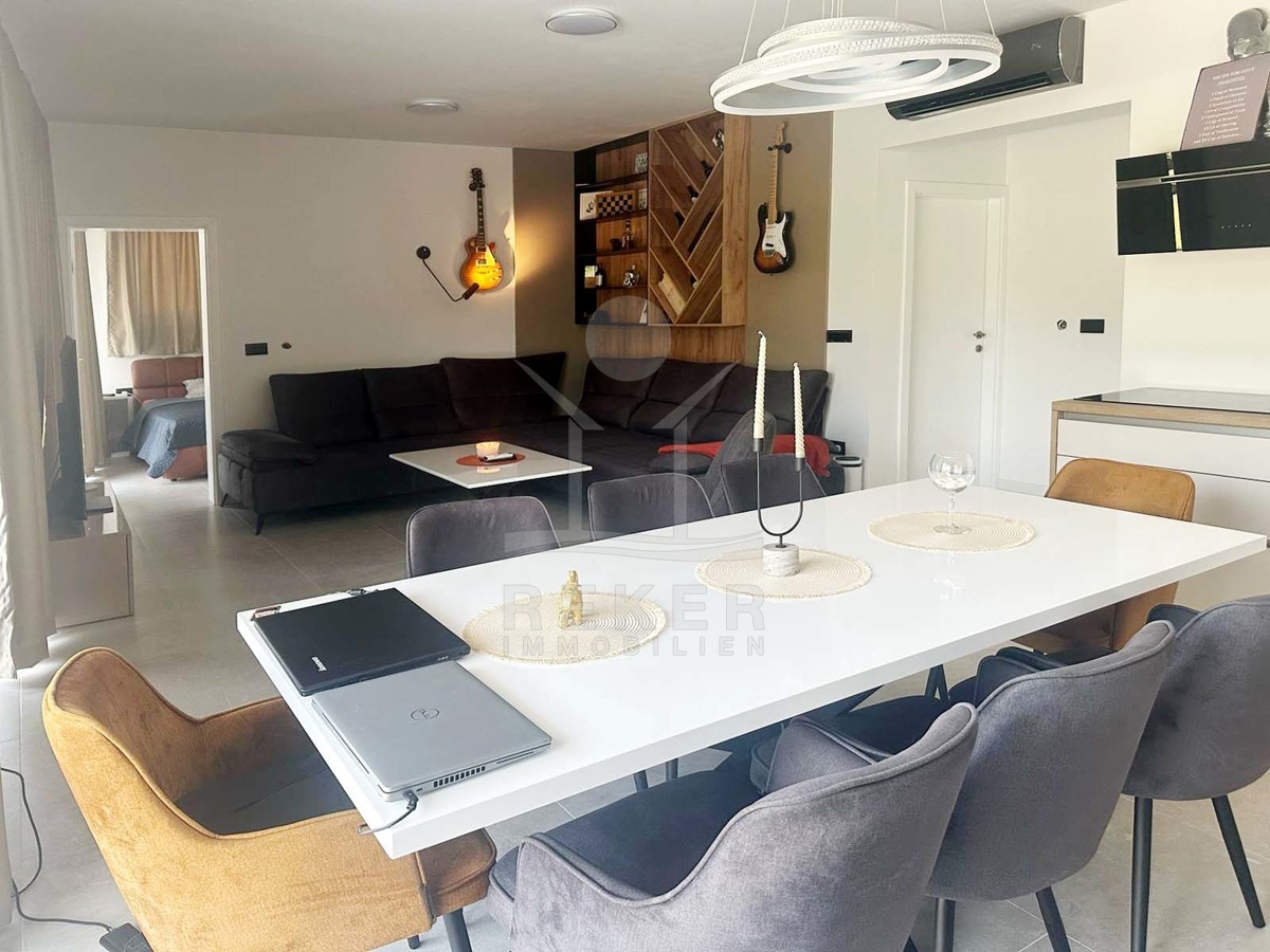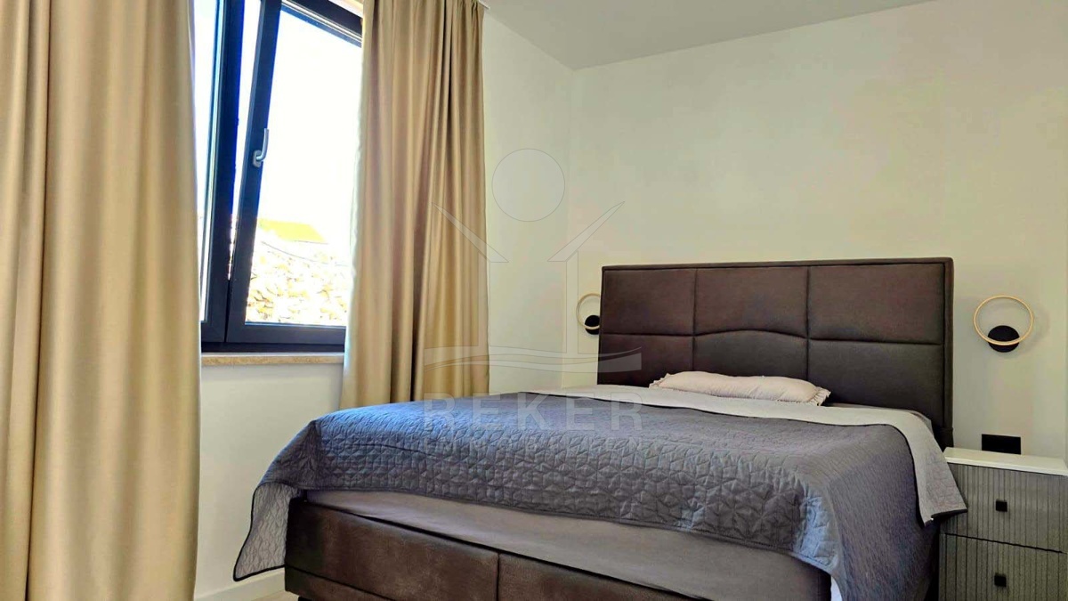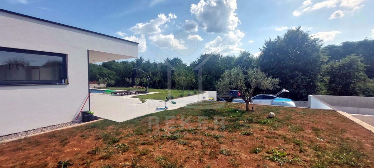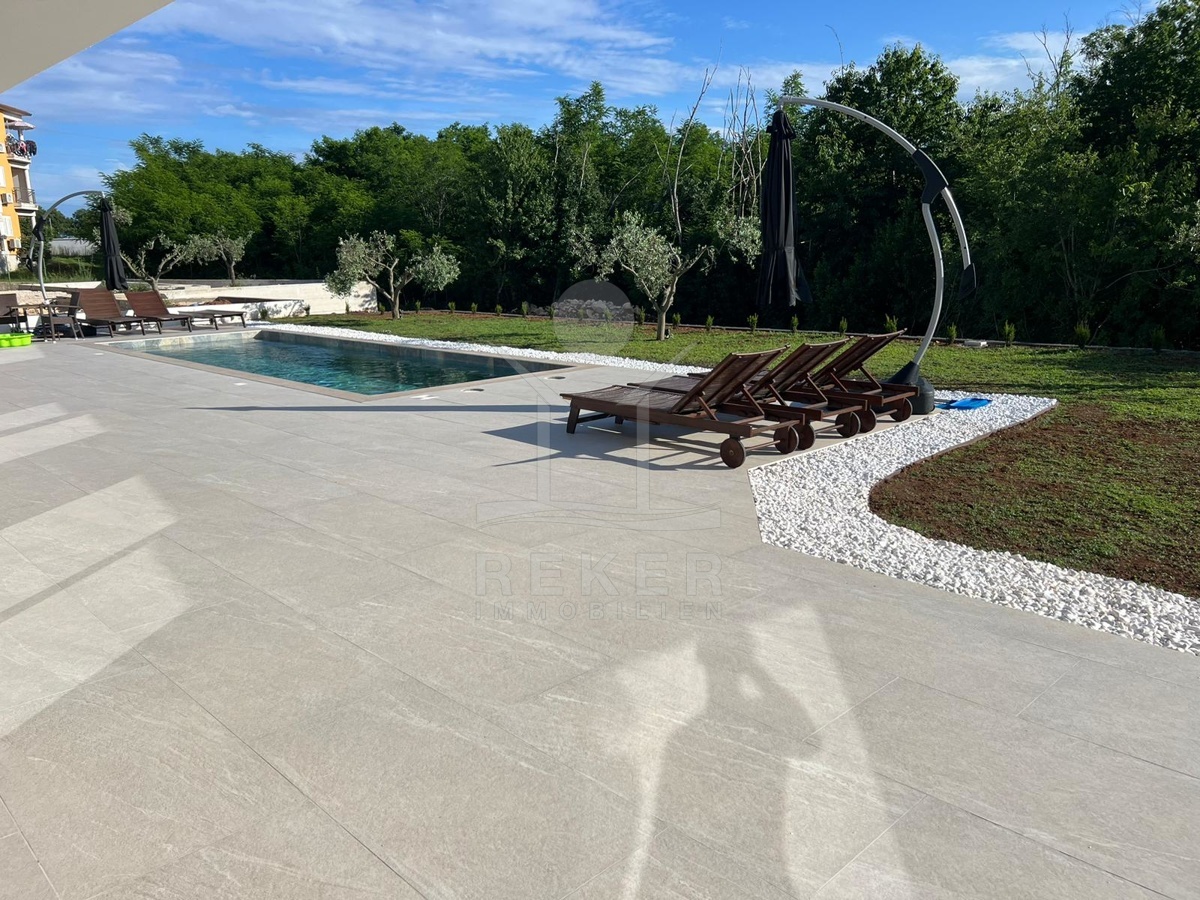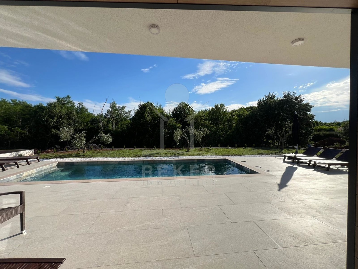Wer in Labin naturnah leben möchte und trotzdem schnell in der Stadt sein will, findet hier die perfekte Balance. Diese neu gebaute Villa liegt in einer ruhigen Umgebung, nur acht Minuten vom Zentrum entfernt. Die nächste Einkaufsmöglichkeit erreichen Sie in wenigen Minuten mit dem Auto. Das Beste: Vor der Villa erstreckt sich eine unbebaubare Fläche – Ihr freier Blick ins Grüne bleibt Ihnen sicher erhalten.