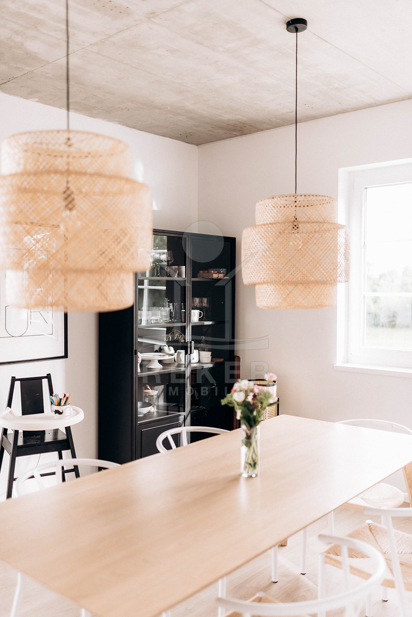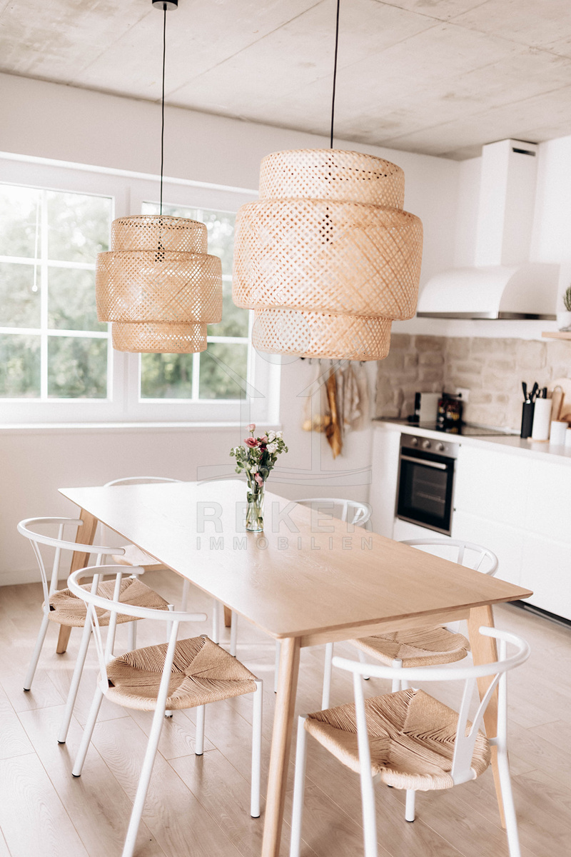 Im Inneren setzt sich die angenehme Atmosphäre fort. Der offene Wohn- und Essbereich mit moderner Küche wirkt großzügig und hell. Hochwertige Möbel und liebevolle Details schaffen sofort ein Gefühl von Zuhause. Drei Schlafzimmer und zwei elegante Badezimmer bieten ausreichend Platz und Komfort. Ein zusätzlicher Abstellraum sorgt für Ordnung.