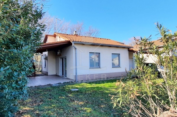 Das Anwesen bietet auf einem Grundstück von 290 m² eine wunderschöne Gartenfläche mit einheimischer Vegetation, Bäumen und Rasenflächen. Das ebenerdige Gebäude mit einer Wohnfläche von 106 m² verfügt über hochwertige PVC-Tischlerei, eine Klimaanlage und sowohl einen Innen- als auch einen Außenkamin für gemütliche Stunden. Der idyllische Garten lädt zum Verweilen ein und schafft eine harmonische Umgebung. Mit Parkplätzen und einer Garage ist auch für ausreichend Stellplatz gesorgt.