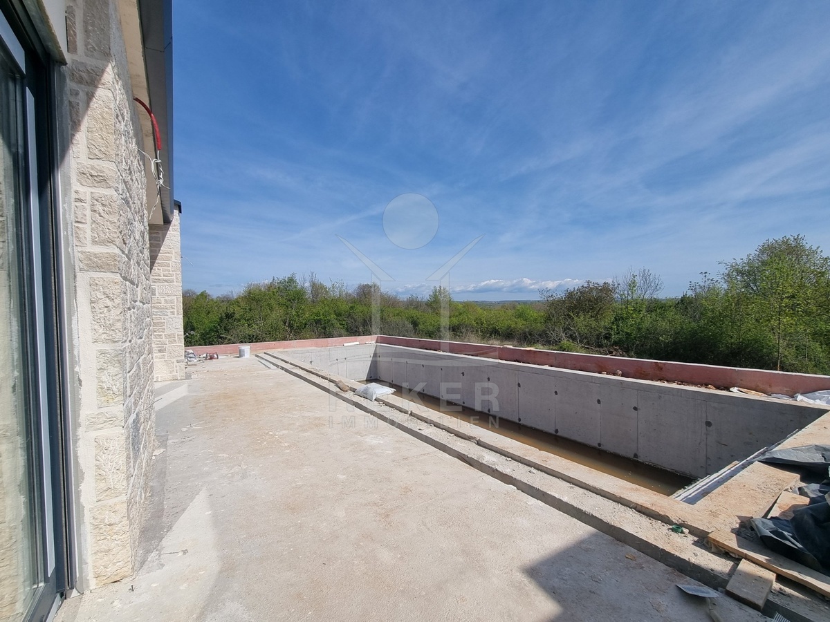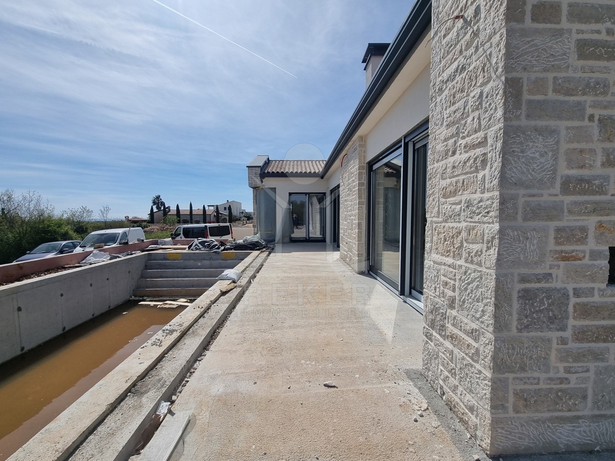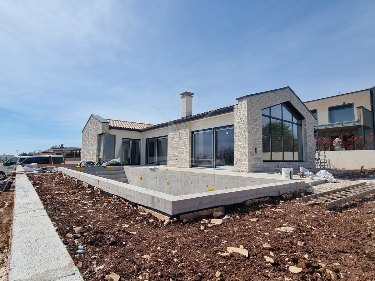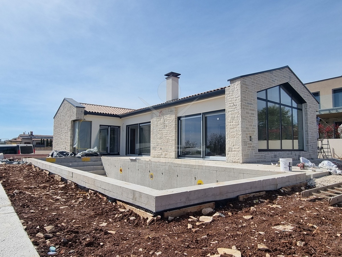 Am ruhigen Rand eines kleinen Orts bei Poreč liegt dieses freistehende Einfamilienhaus – nur drei Kilometer vom Meer entfernt. Die Umgebung ist grün, die Zufahrt bequem. Es gibt zwei Stellplätze direkt am Haus. Hier hört man eher Vogelstimmen als Autolärm. Kein Durchgangsverkehr, kein Trubel.