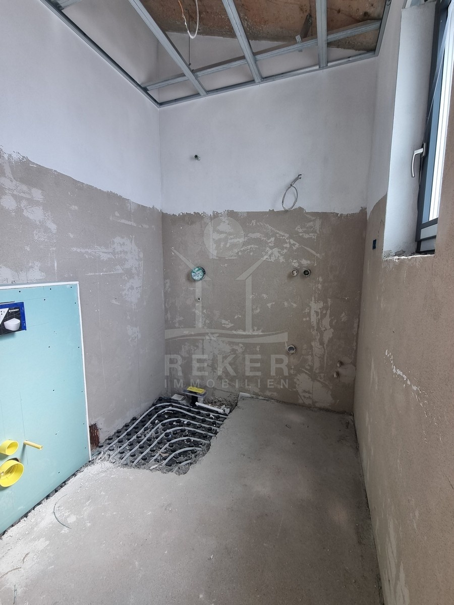 Im Außenbereich wartet ein schön angelegter Garten. Komplett eingefriedet, mit Terrasse und einem 44 m² großen Pool. Genug Platz für Sonnenliegen, Planschspaß oder entspannte Abende. Die Außenanlagen werden noch fertig gestaltet – bis Juni 2025 soll alles stehen. Auch der Garten bekommt seinen Feinschliff.