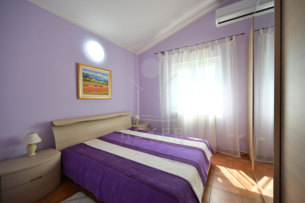 Der wundervolle Bungalow befindet sich in einer ruhigen Lage in der Nähe von Poreč, nur 7 km vom Meer und dem Zentrum der Stadt entfernt. Diese Gegend bietet eine entspannte Atmosphäre und dennoch sind notwendige Einrichtungen, Einkaufsmöglichkeiten und Restaurants in unmittelbarer Nähe vorhanden. Poreč ist eine der beliebtesten Städte in Istrien und bekannt für ihr vielseitiges Tourismusangebot. Hier können Sie kulturelle Sehenswürdigkeiten wie die Euphrasia Basilika (UNESCO Weltkulturerbe) entdecken und das charmante Flair der Stadt genießen. Am Abend laden zahlreiche kulturelle Veranstaltungen und das lebendige Nachtleben zum Verweilen ein. Die Strände in der Umgebung sind mit der "Blauen Flagge" ausgezeichnet und bieten Badespaß für die ganze Familie. Für Aktivurlauber gibt es ein breites Sport- und Freizeitangebot. Nutzen Sie die Gelegenheit, die schöne Umgebung zu erkunden und entdecken Sie weitere Orte wie Funtana und Rovinj in der Umgebung.