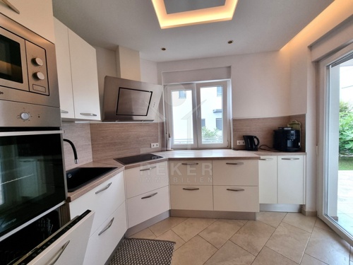 Im Inneren wartet das Haus mit rund 126 m² Wohnfläche auf einer Ebene auf – keine Stufen, keine Treppen. Der zentrale Wohn-Essbereich mit offener Küche ist großzügig geschnitten und wirkt durch die bodentiefen Fenster besonders hell. Die moderne Einbauküche ist komplett ausgestattet, alles ist gepflegt und voll funktionsfähig. Hochwertige Holzböden ziehen sich durch fast alle Räume. Drei Schlafzimmer – jedes mit eigenem Badezimmer – bieten viel Privatsphäre für Familie oder Gäste. Auch Klimaanlage und Infrarot-Heizpaneele sind bereits verbaut. Die Möbel sind im Kaufpreis enthalten, so wie gesehen – Sie können sofort einziehen oder vermieten.