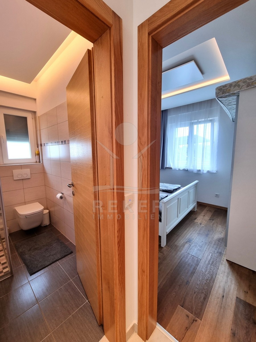 Nur zwei Kilometer vom Meer und fünf Minuten außerhalb von Poreč liegt dieses freistehende Einfamilienhaus angenehm ruhig am Rand eines kleinen Ortes. Keine direkte Nachbarschaft auf allen Seiten, dafür viel Grün, Luft und Weite. Perfekt für alle, die das Leben in der Nähe der Küste genießen wollen – ohne den touristischen Trubel vor der Tür. Auf dem Grundstück stehen zwei private Stellplätze zur Verfügung, einer davon überdacht. Die Zufahrt ist asphaltiert.
