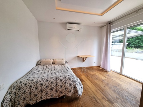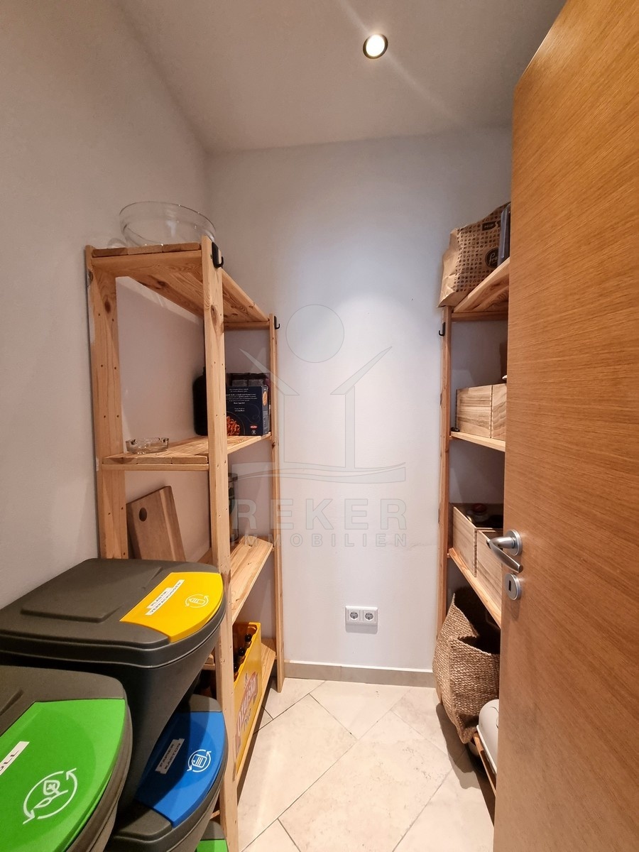 Der Außenbereich ist liebevoll gestaltet und bietet alles, was man im Süden erwartet: Ein eigener Pool mit umlaufender Liegefläche, ein gepflegter Garten und ein gemauerter, überdachter Grillplatz. Die große, überdachte Terrasse grenzt direkt an das Wohnzimmer an – ideal für Frühstück mit Morgensonne oder laue Abende mit Blick ins Grüne. Ein Ort für Erholung, ohne Aufwand – einfach raus, rein ins Wasser oder an den Tisch.