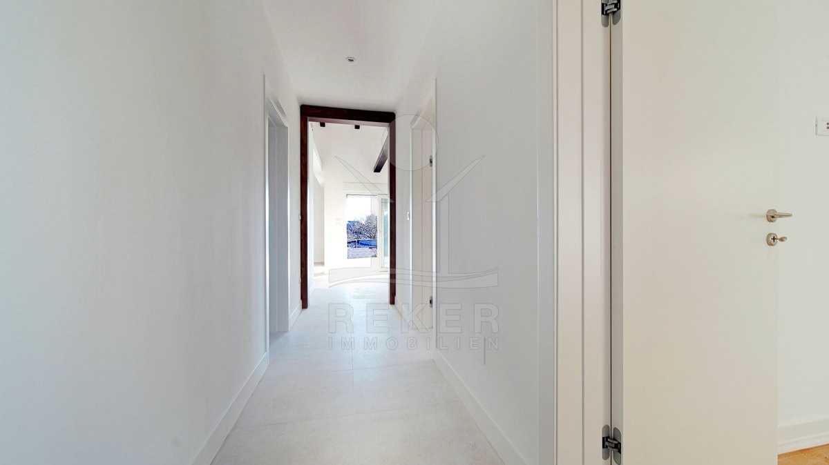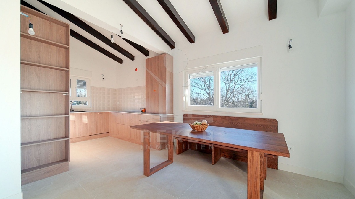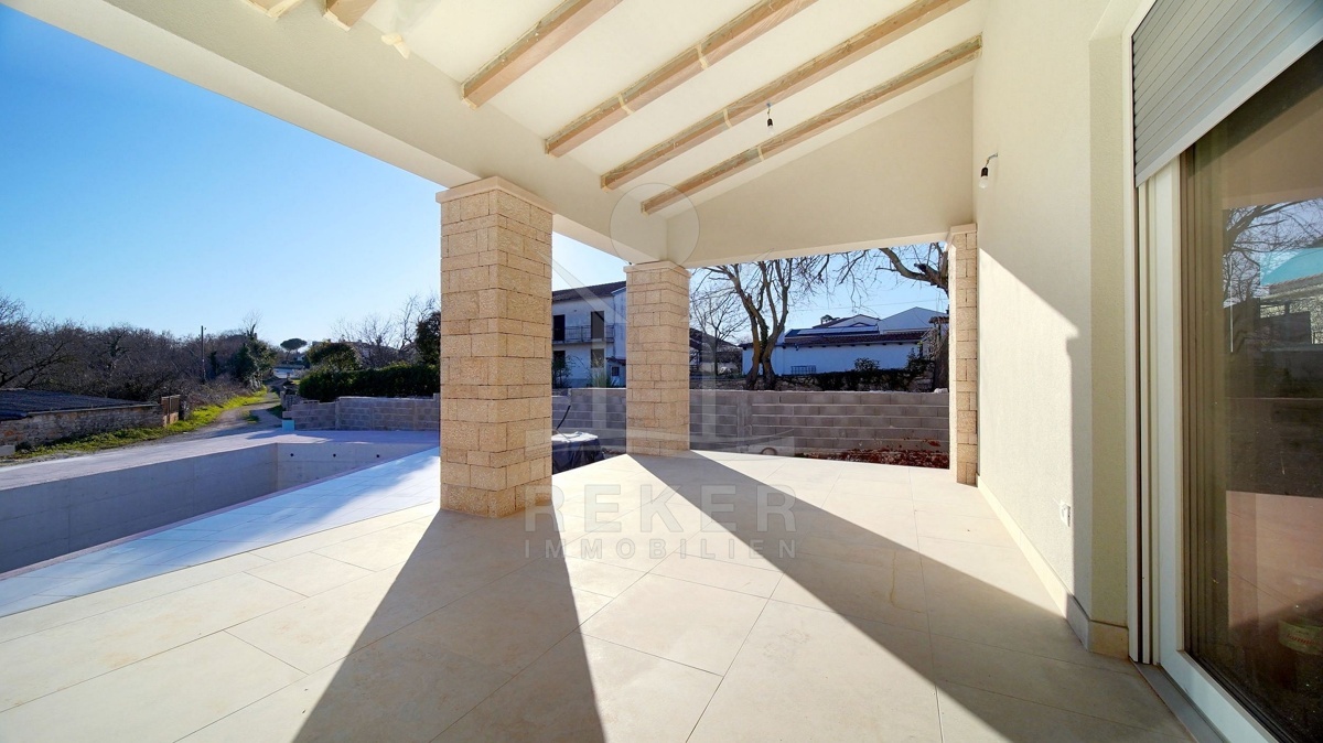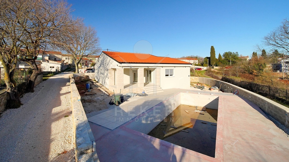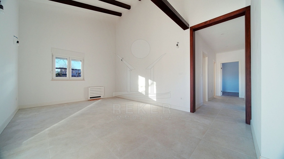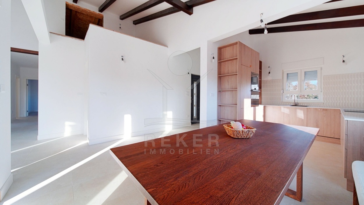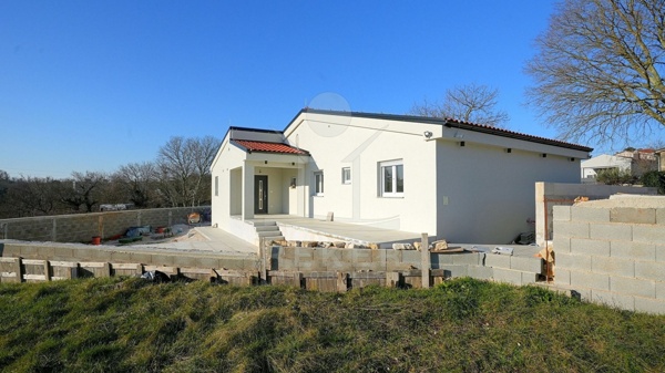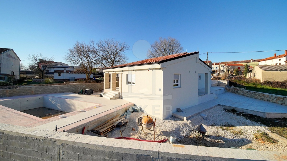 In einem idyllischen Dorf, nur 10 Kilometer von Rovinj entfernt, steht dieses moderne Einfamilienhaus. Hier genießen Sie Ruhe und Privatsphäre, sind aber in wenigen Minuten an den Stränden, in Geschäften oder Restaurants. Die gute Anbindung bringt Sie nach 5 km zur Autobahn und nach 35 km zum Flughafen Pula. Familien freuen sich über die Grundschule gleich um die Ecke. Zwei Stellplätze und ein Abstellraum für Fahrräder erleichtern den Alltag.