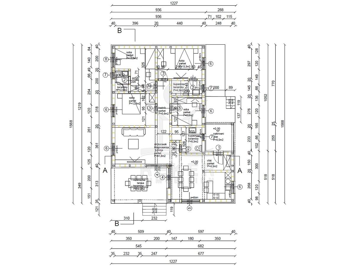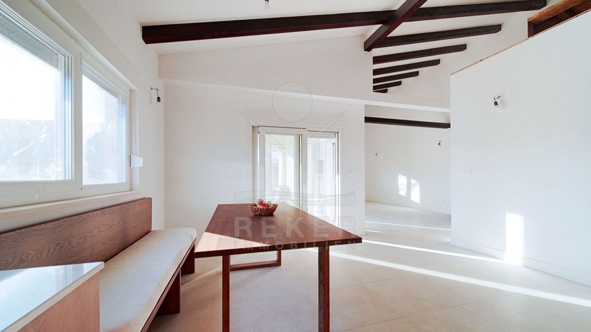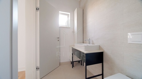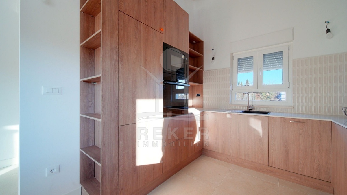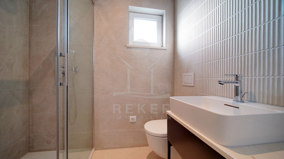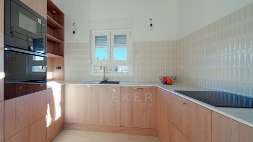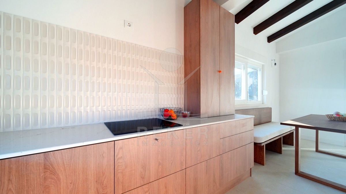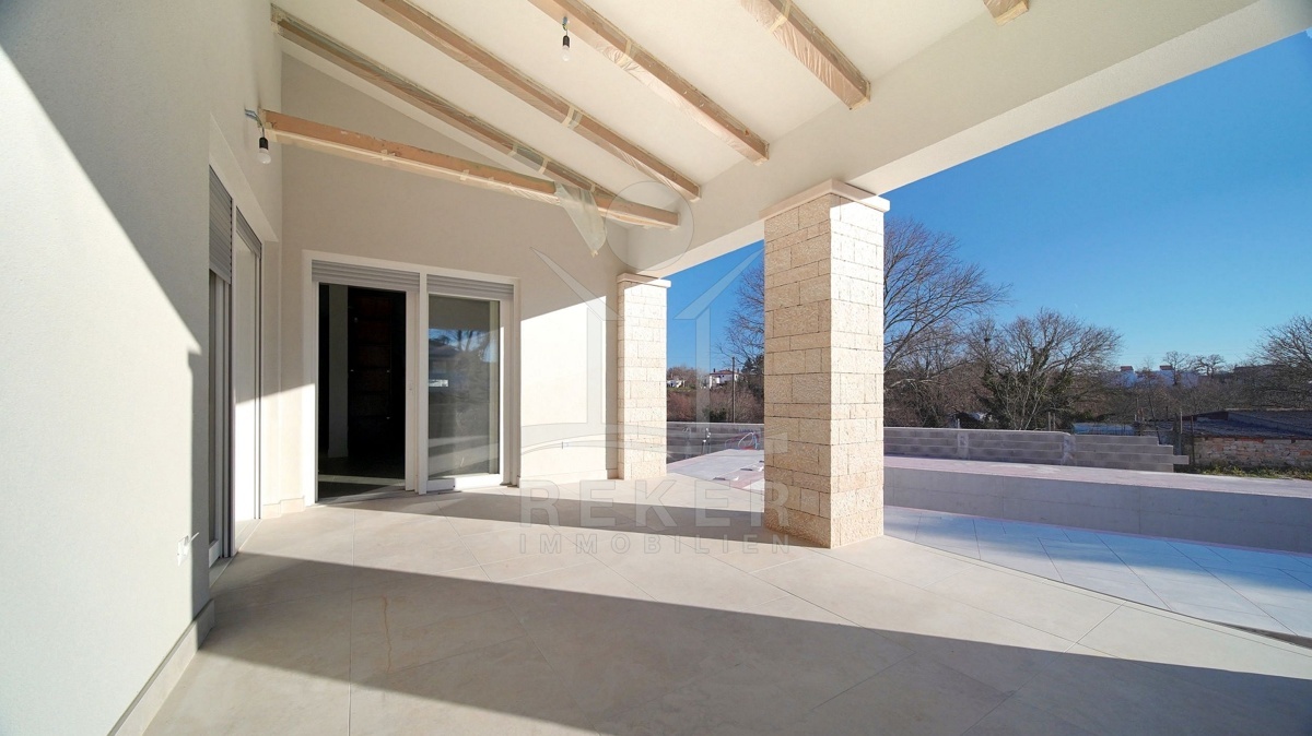 In einem idyllischen Dorf, nur 10 Kilometer von Rovinj entfernt, steht dieses moderne Einfamilienhaus. Hier genießen Sie Ruhe und Privatsphäre, sind aber in wenigen Minuten an den Stränden, in Geschäften oder Restaurants. Die gute Anbindung bringt Sie nach 5 km zur Autobahn und nach 35 km zum Flughafen Pula. Familien freuen sich über die Grundschule gleich um die Ecke. Zwei Stellplätze und ein Abstellraum für Fahrräder erleichtern den Alltag.