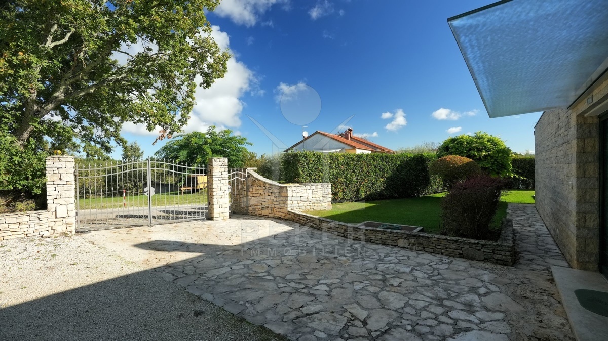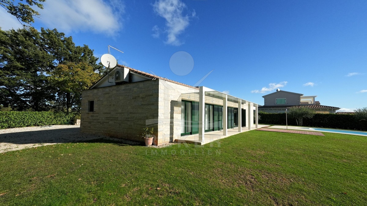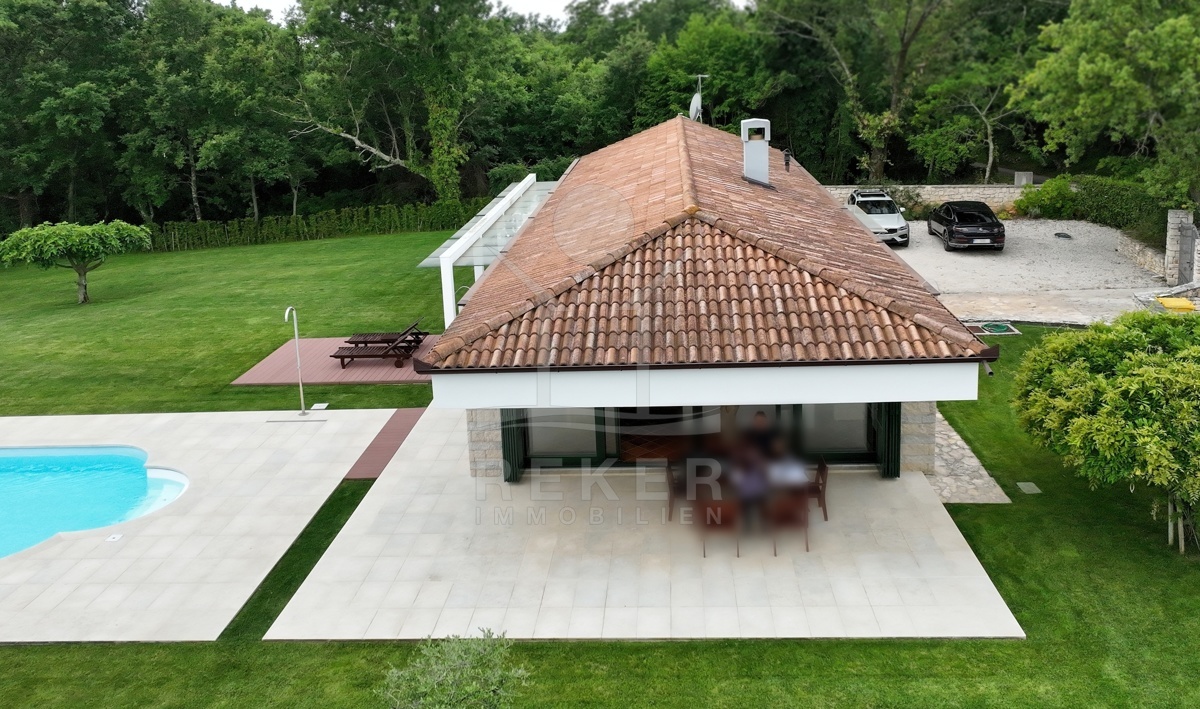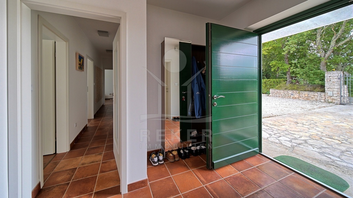 Die moderne Villa liegt in der ruhigen Umgebung eines sanften Dorfes in der Nähe von Sveti Lovreč und am Rande eines Eichenwaldes. Hier genießen Sie Ruhe, Privatsphäre und die Schönheit der umgebenden Natur. Die historische Stadt Sveti Lovreč, mit ihren gut erhaltenen mittelalterlichen Festungsmauern und bedeutenden Sakralbauten, liegt nur einen kurzen Spaziergang entfernt. Die Nähe zu Poreč, Rovinj und Opatija ermöglicht es Ihnen, das kulturelle Angebot und die Annehmlichkeiten dieser Städte schnell zu erreichen. Die Autobahneinfahrt ist nur 10 km entfernt und der Flughafen Pula in einer Entfernung von 42 km erreichbar. Diese Lage vereint modernen Luxus mit historischem Flair und bietet eine einzigartige Möglichkeit, die Schönheit Istriens zu erleben.