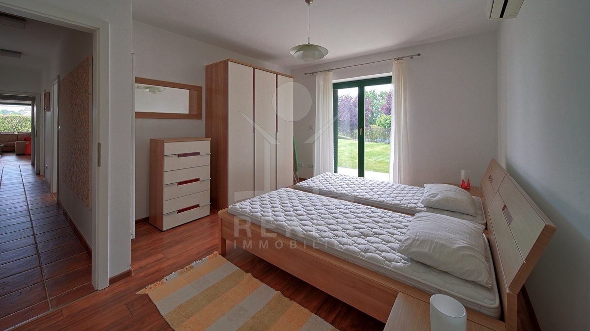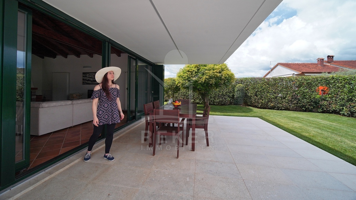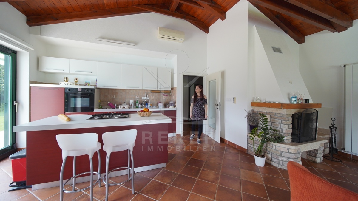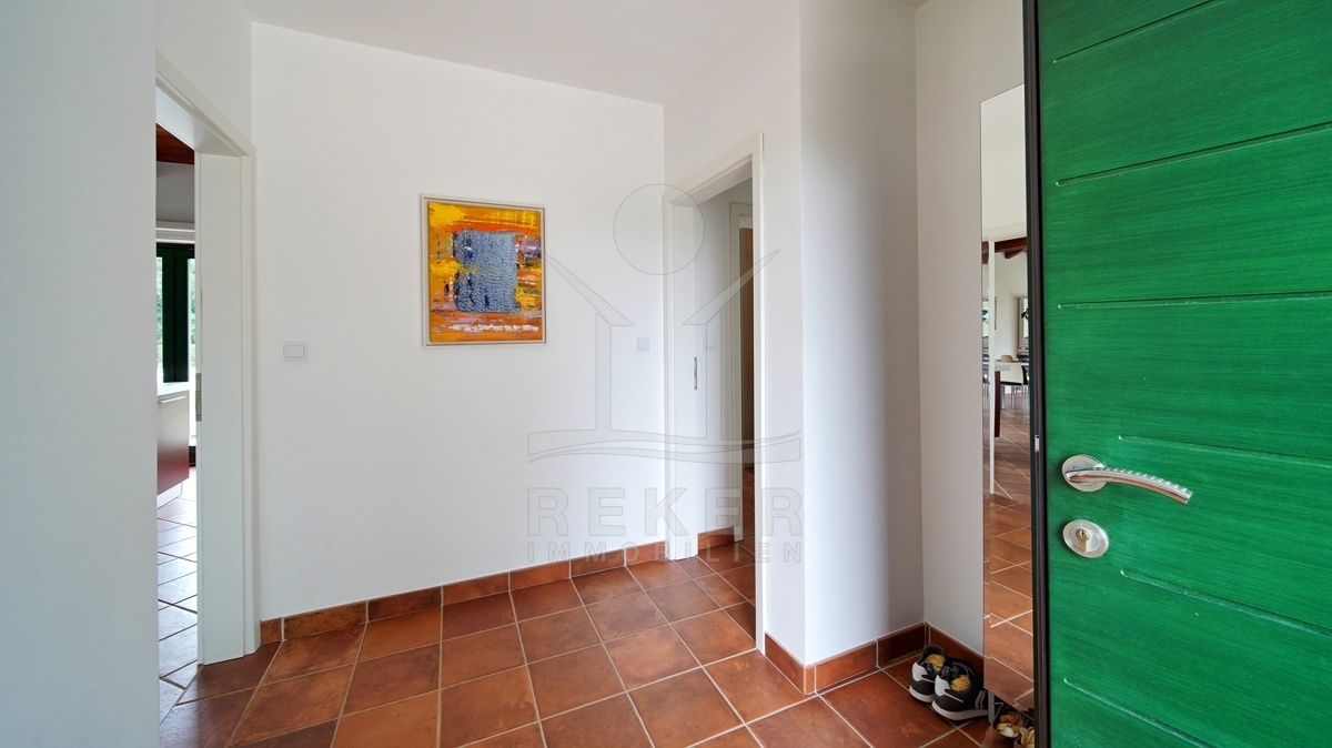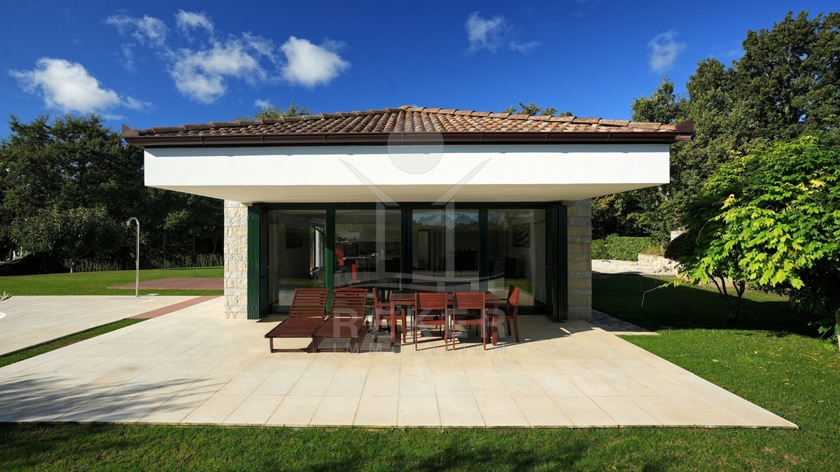 Die moderne Villa liegt in der ruhigen Umgebung eines sanften Dorfes in der Nähe von Sveti Lovreč und am Rande eines Eichenwaldes. Hier genießen Sie Ruhe, Privatsphäre und die Schönheit der umgebenden Natur. Die historische Stadt Sveti Lovreč, mit ihren gut erhaltenen mittelalterlichen Festungsmauern und bedeutenden Sakralbauten, liegt nur einen kurzen Spaziergang entfernt. Die Nähe zu Poreč, Rovinj und Opatija ermöglicht es Ihnen, das kulturelle Angebot und die Annehmlichkeiten dieser Städte schnell zu erreichen. Die Autobahneinfahrt ist nur 10 km entfernt und der Flughafen Pula in einer Entfernung von 42 km erreichbar. Diese Lage vereint modernen Luxus mit historischem Flair und bietet eine einzigartige Möglichkeit, die Schönheit Istriens zu erleben.