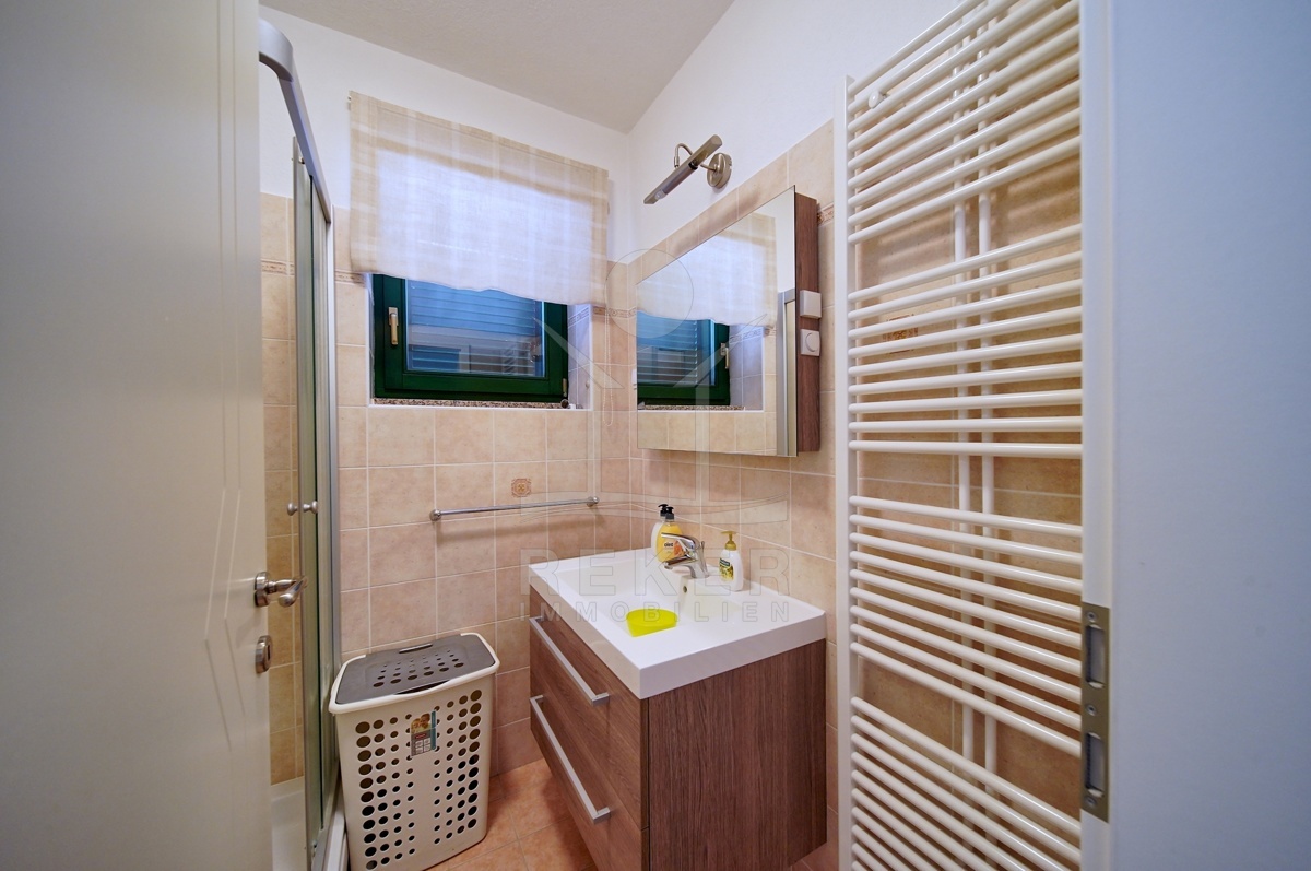 Das Haus verbindet rustikales Design mit modernem Komfort. Die Klimaanlage in der Küche und den Schlafzimmern sorgt für angenehme Temperaturen. Die Möbel sind Teil des Angebots und geben dem Haus einen einladenden Charakter. Der Eingang des Hauses befindet sich auf der Nordwestseite. Die luftige Villa verfügt über ein Wohnzimmer mit offener Küche und Esszimmer, 3 Schlafzimmer, 3 Badezimmer und einen Abstellraum. Die überdachte Terrasse (22, 40 m²) lädt zum Entspannen im Freien ein.