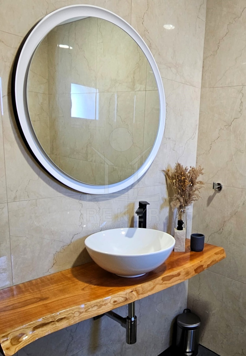 Der großzügige Bereich vereint Küche, Esszimmer und Wohnzimmer in einem offenen und einladenden Konzept, das durch Glaswände nahtlos mit dem Außenbereich verbunden ist. Hier wird der Übergang zwischen Innen- und Außenbereich perfekt gestaltet. Das Haus verfügt über 3 Schlafzimmer, die jeweils mit eigenem Bad ausgestattet sind. So genießen Sie Privatsphäre und Komfort für sich und Ihre Gäste. Zusätzlich gibt es ein Gäste-WC – ideal für Besuch oder Familienfeiern.