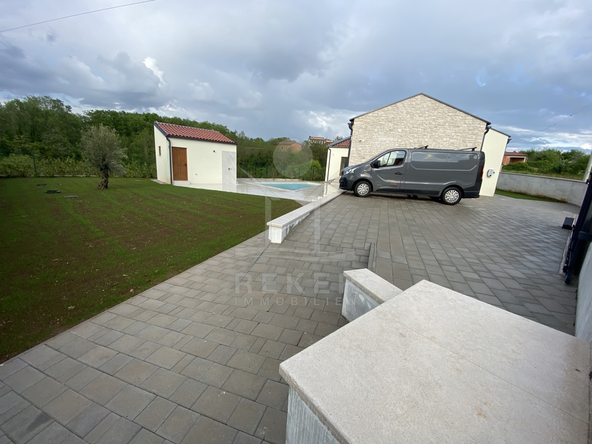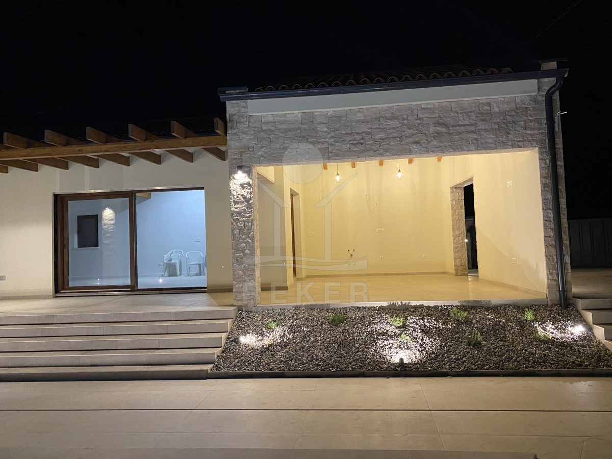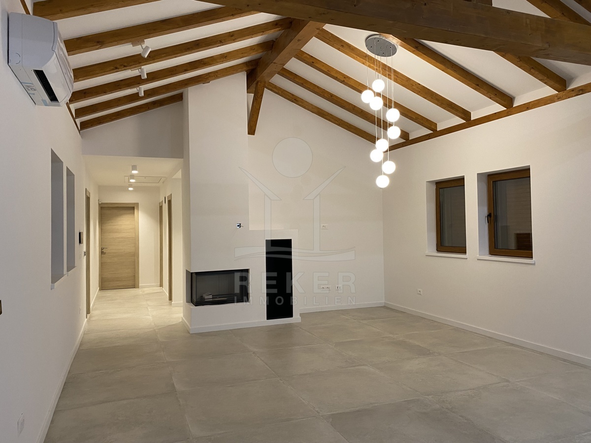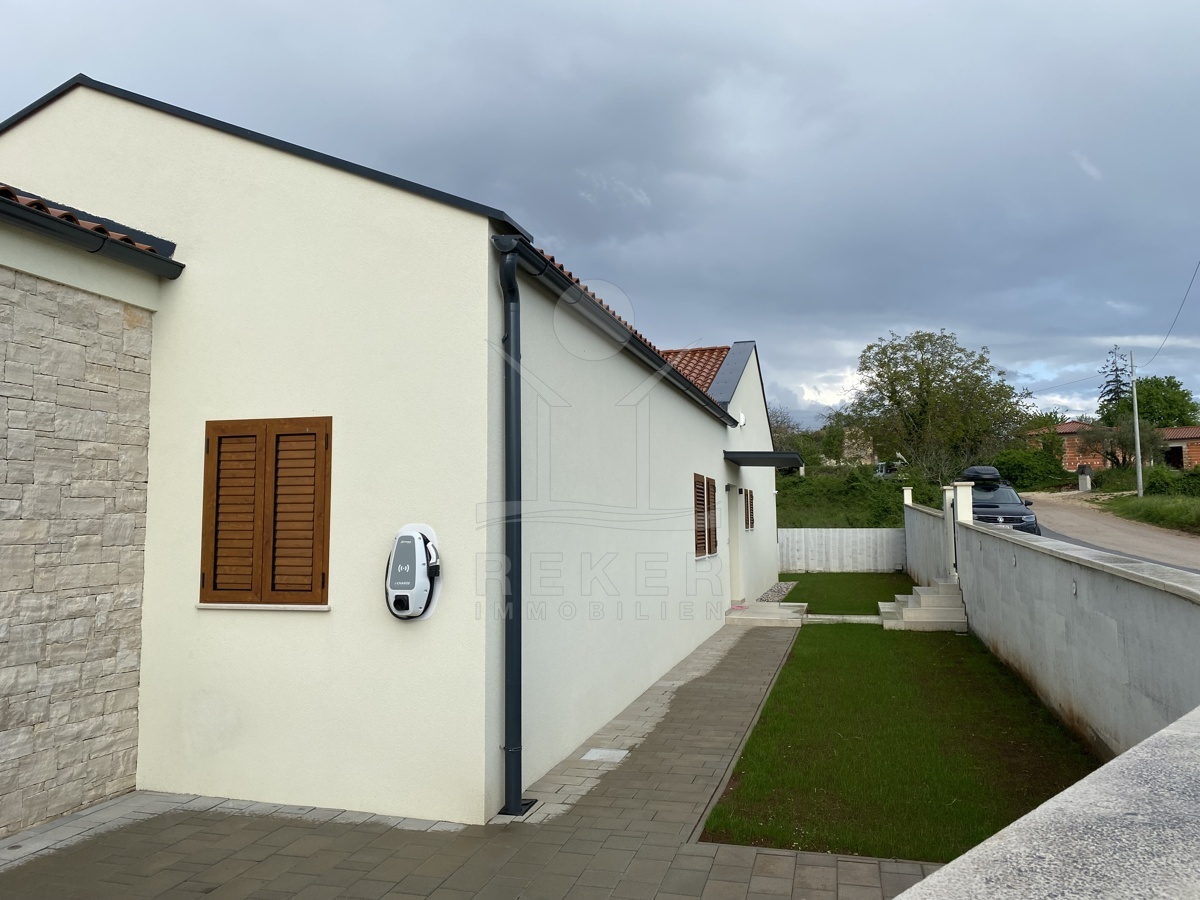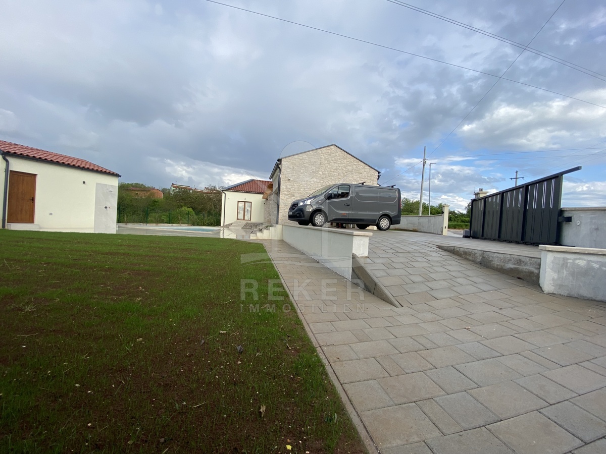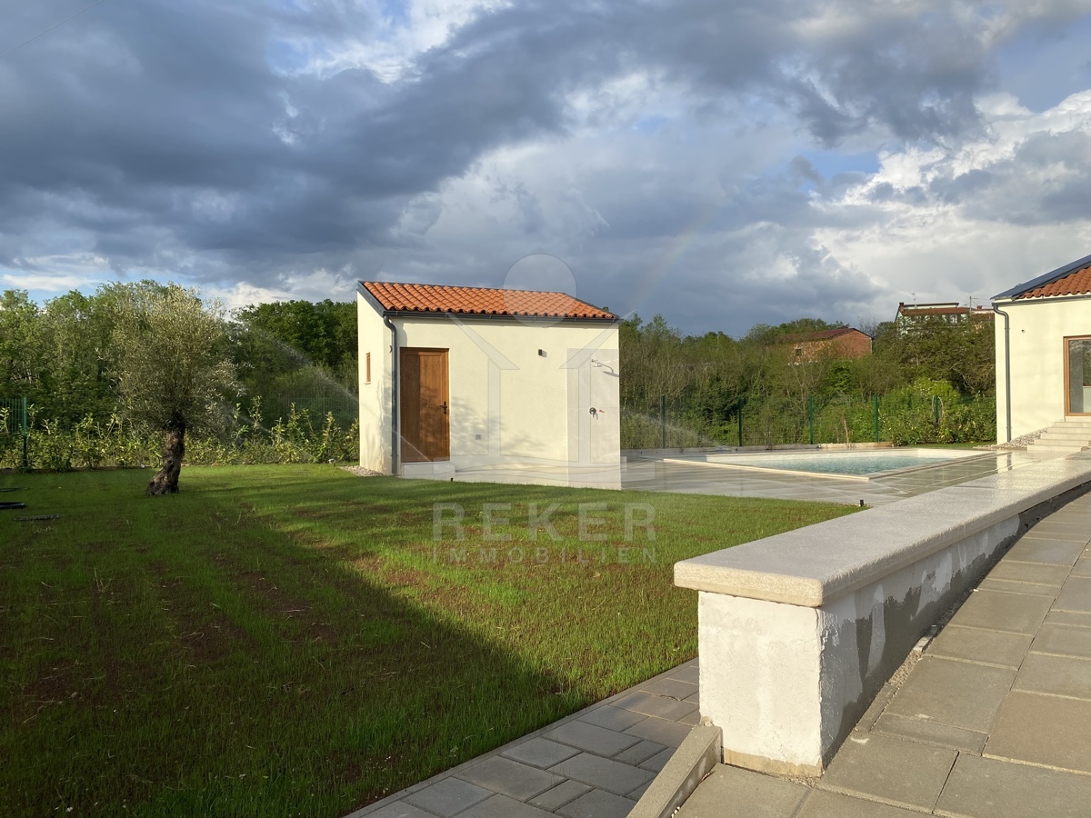 Rund 18 Kilometer von der Küste entfernt, liegt dieses hochwertige Einfamilienhaus eingebettet in die grüne Hügellandschaft bei Tinjan. Die Umgebung ist geprägt von Ruhe, Natur und viel Privatsphäre. Es gibt kaum Nachbarn – dafür Wald, mediterrane Pflanzen und eine wenig befahrene Straße direkt vor dem Grundstück. Wer Natur liebt und Wert auf Ungestörtheit legt, findet hier ein echtes Refugium.